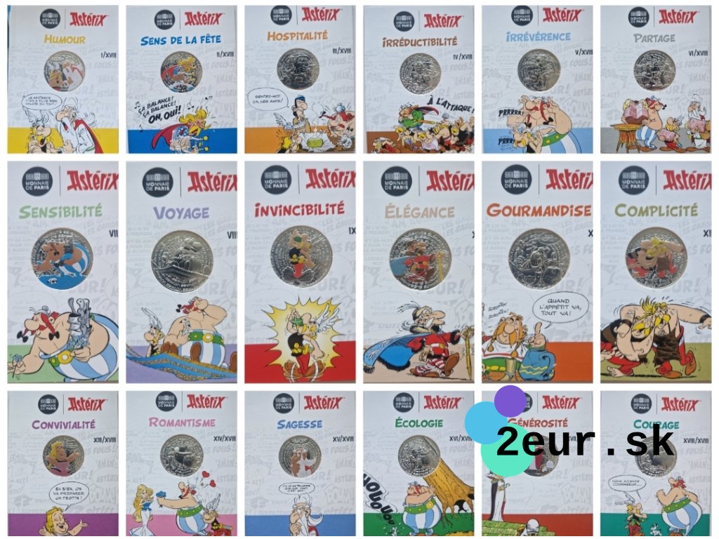 Asterix a Obelix, hrdinovia slávnych komiksov od Reného Goscinnyho a Alberta Uderza, sú symbolom francúzskej kultúry a dobrodružstiev plných humoru, odvahy a priateľstva. Ich príbehy sa odohrávajú v čase rímskej okupácie Gálie, kde spolu so svojimi spoluobčanmi odolávajú Rimanom vďaka zázračnému nápoju. Séria strieborných 10-eurových mincí z Paríža vzdáva poctu týmto ikonickým postavám a je obľúbeným zberateľským kúskom, ktorý spája numizmatiku s láskou k tomuto kultovému komiksu.
