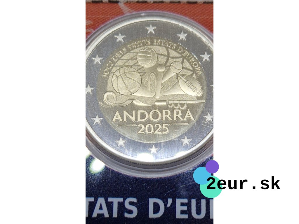 2 eurová minca Andorra 2025 „Hry malých štátov Európy“ vychádza vo verzii Proof. Hry malých štátov sú viacšportové podujatie pre krajiny do jedného milióna obyvateľov a posilňujú spoluprácu, priateľstvo a rozvoj športu v Európe. Emisia nadväzuje na účasť Andorry v tomto podujatí a patrí medzi veľmi ojedinelé andorrské Proof vydania – ide v poradí len o štvrté 2 eurové Proof vydanie Andorry.
