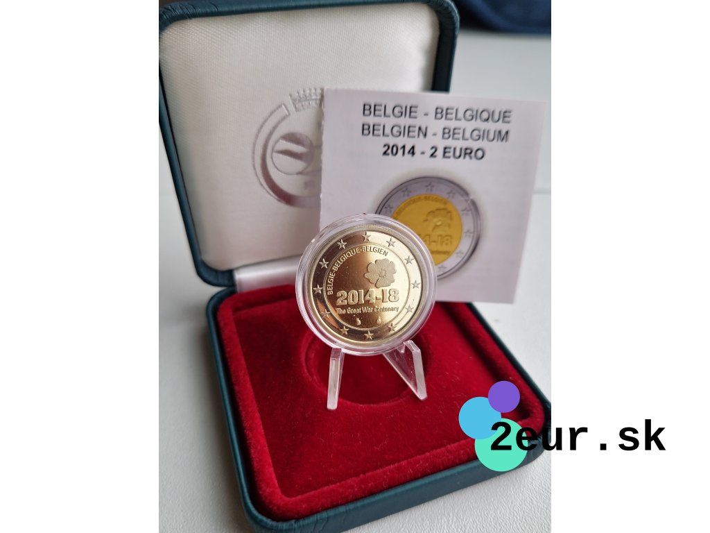 2 eurová minca Belgicko 2014 v kvalite proof bola vydaná pri príležitosti 100. výročia začiatku 1. svetovej vojny. Ide o oficiálnu zberateľskú mincu Belgicka v najvyššej kvalite proof, určenú pre zberateľov euromincí. Dodáva sa v originálnom balení Belgickej kráľovskej mincovne, ktoré zdôrazňuje jej exkluzivitu a starostlivé spracovanie. Táto minca je jednou z najvyhľadávanejších belgických proof mincí.