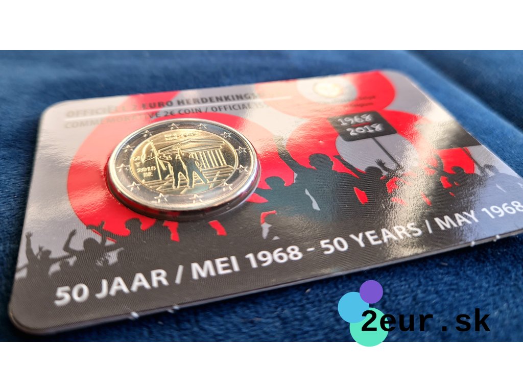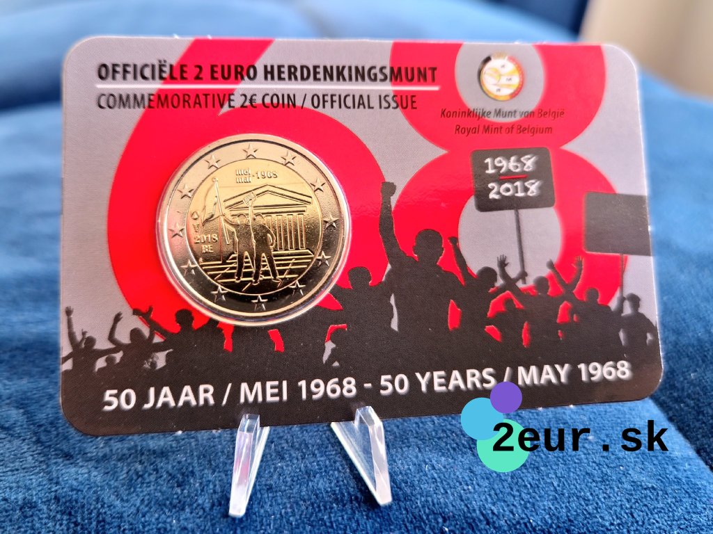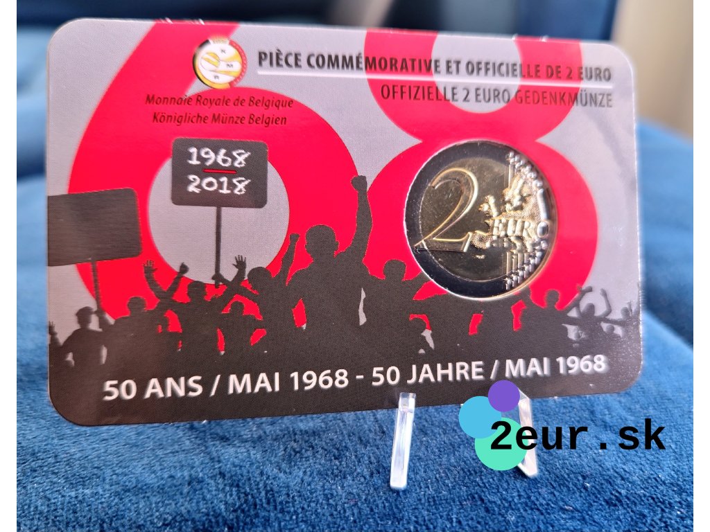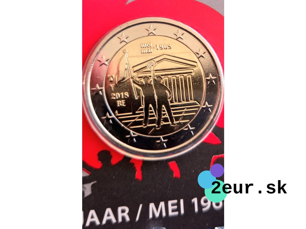 Belgická dvojeurová (2 eurová) minca z roku 2018 bola vydaná pri príležitosti 50. výročia udalostí z mája 1968, ktoré sa zapísali do histórie ako obdobie spoločenských a politických zmien. Emisia pripomína protesty a diskusie, ktoré formovali modernú demokraciu a občianske slobody. Téma zdôrazňuje význam dialógu a angažovanosti občanov vo verejnom živote.