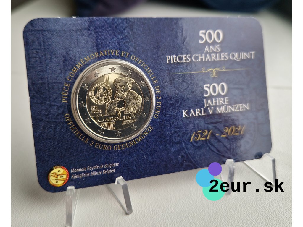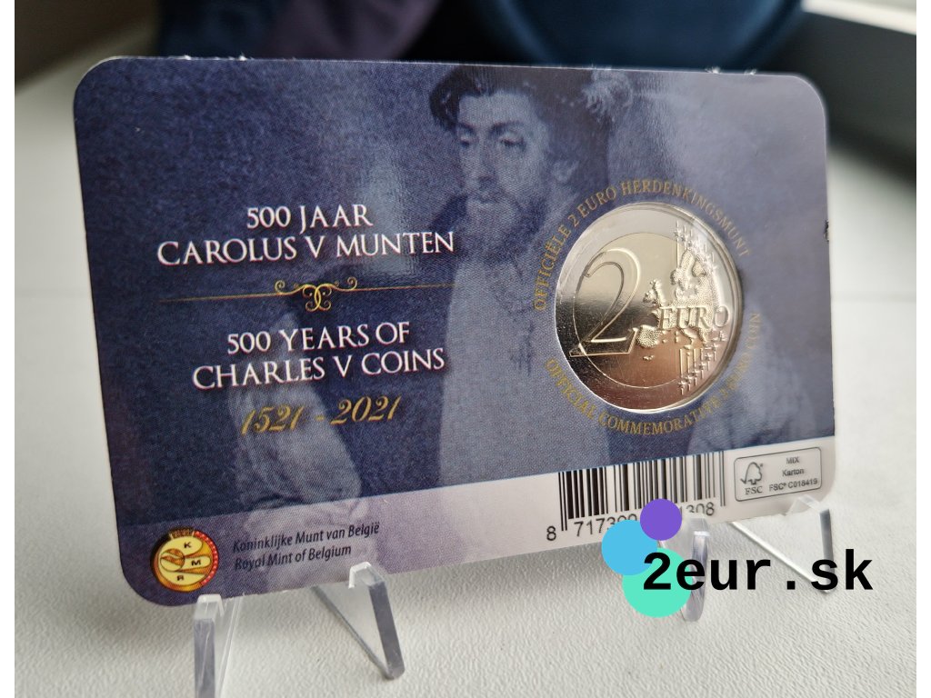 Belgická dvojeurová (2 eurová) minca z roku 2021 pripomína 500. výročie vydania nariadenia o druhej emisnej sérii mincí za vlády Karola V. Emisia odkazuje na významnú etapu v histórii belgického mincovníctva a stabilizácie meny v období panovníka. Téma zdôrazňuje historický kontext a dôležitosť legislatívnych opatrení pre hospodárstvo tej doby.