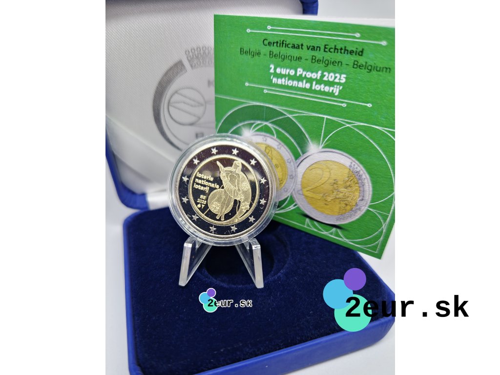 Pamätná 2-eurová minca vydaná Belgickom v roku 2025 oslavuje Národnú lotériu Belgicka, ktorá je významnou inštitúciou podporujúcou kultúru, šport a dobročinnosť. Motív mince zobrazuje symboliku lotérie spojenú s historickým významom a jej úlohou v belgickej spoločnosti. Táto edícia zdôrazňuje dôležitosť spoločenských hodnôt, ktoré lotéria podporuje už desaťročia. Mince v najvyššej kvalite proof sú uložené v elegantnej krabičke s certifikátom, ktorý zaručuje jej autenticitu.