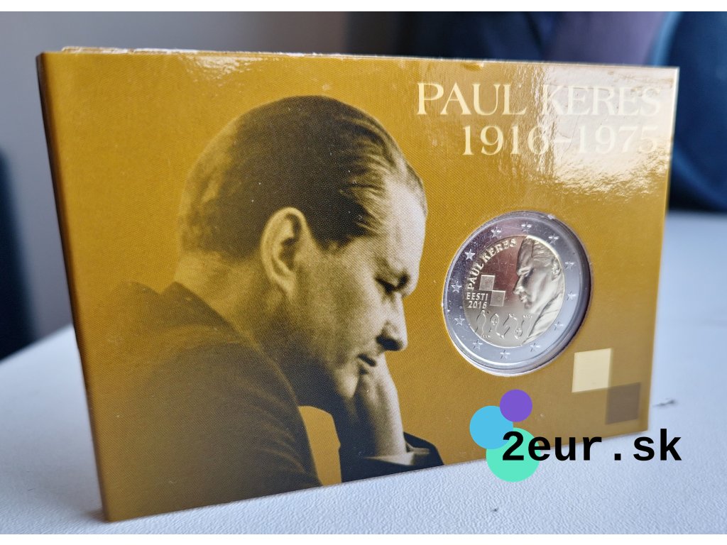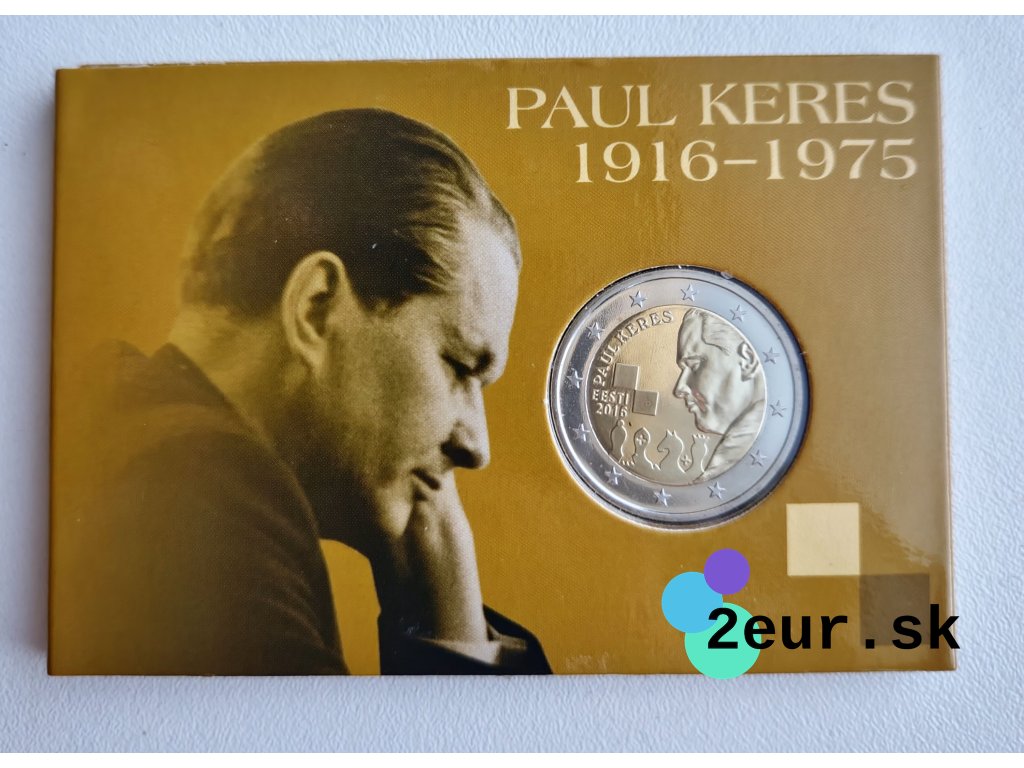Estónska dvojeurová (2 eurová) minca z roku 2016 bola vydaná pri príležitosti 100. výročia narodenia Paula Keresa, svetovo uznávaného šachového veľmajstra a jednej z najväčších osobností estónskeho športu. Emisia pripomína jeho bohatú kariéru, počas ktorej patril desaťročia medzi absolútnu špičku svetového šachu a získal si uznanie pre svoj výnimočný talent, stratégiu i džentlmenský prístup k hre. Motív mince symbolizuje jeho celoživotnú oddanosť šachu a jeho miesto v histórii ako jedného z najsilnejších hráčov, ktorí nikdy nezískali titul majstra sveta.