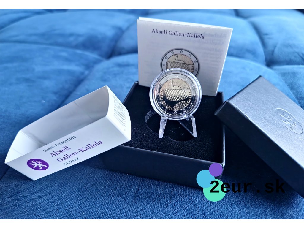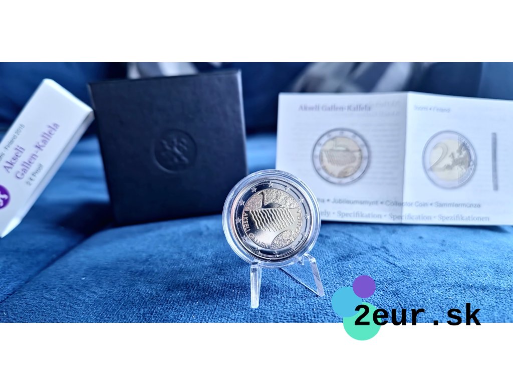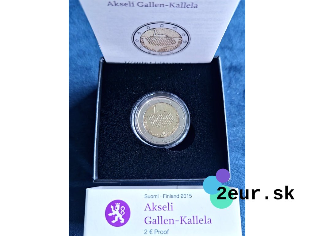 Fínsko v roku 2015 vydalo pamätnú 2-eurovú mincu pri príležitosti 150. výročia narodenia Axeliho Gallena-Kallelu, významného fínskeho maliara a dizajnéra. Jeho diela, inšpirované fínskym folklórom a eposom Kalevala, zohrali dôležitú úlohu v národnom umení a kultúre. Motív mince zobrazuje detaily z jeho tvorby, ktoré odrážajú jedinečný štýl a vizionársky prístup k umeniu.