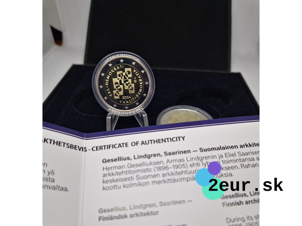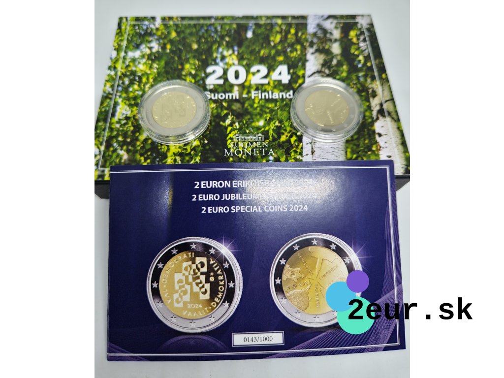 Fínsky proof set z roku 2024 obsahuje dve pamätné dvojeurové mince. Obe mince spájajú estetiku s historickým a kultúrnym odkazom. Proof set je prezentovaný v elegantnej originálnej krabičke, ktorá podčiarkuje kvalitu a precízne spracovanie obsahu.