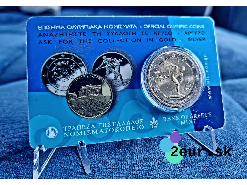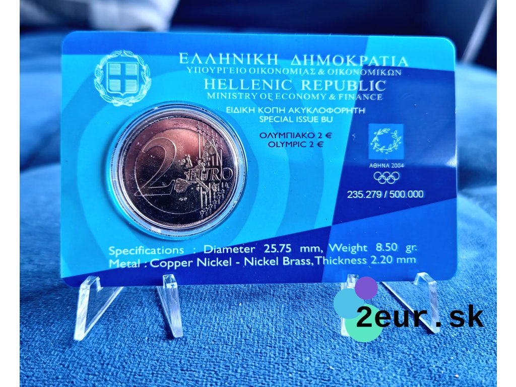 Olympijské hry v Aténach v roku 2004 predstavovali historický návrat hier do ich rodného mesta, kde sa moderné olympijské hry zrodili. Tieto hry symbolizovali prepojenie antických tradícií s modernou érou a priniesli veľkú pozornosť Grécku a jeho kultúrnemu dedičstvu. Pri tejto príležitosti bola vydaná 2-eurová minca v kvalite BU, ktorá je k dispozícii v pamätnej karte, čím sa stala atraktívnym suvenírom pre zberateľov a milovníkov olympijskej histórie.