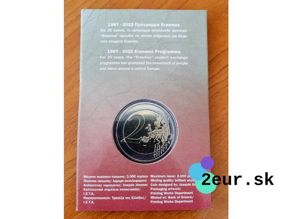 Program Erasmus už 35 rokov umožňuje miliónom študentov spoznávať Európu prostredníctvom vzdelávania a kultúrnej výmeny. Vďaka nemu sa vytvorili silné väzby medzi univerzitami a podporila sa myšlienka spoločného európskeho priestoru založeného na spolupráci a poznaní. Grécko vydalo v roku 2022 pamätnú dvoj-eurovú mincu, ktorá pripomína význam tohto programu pre budúce generácie.
