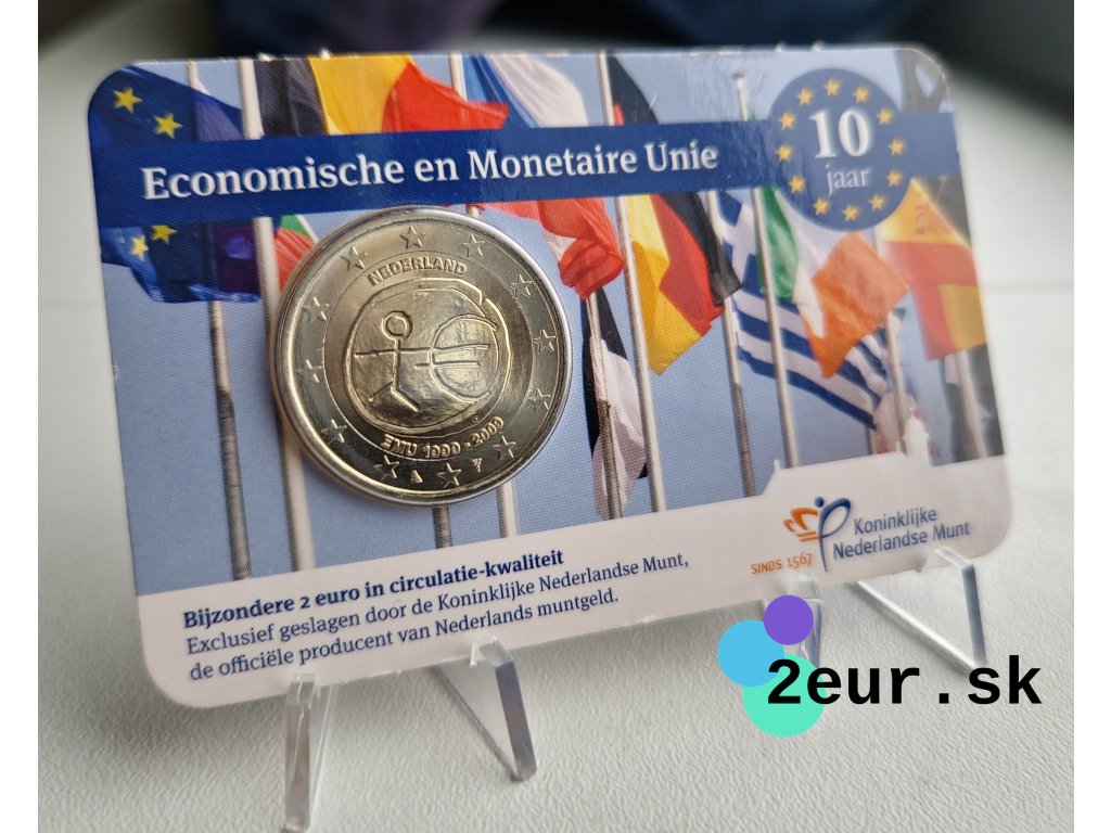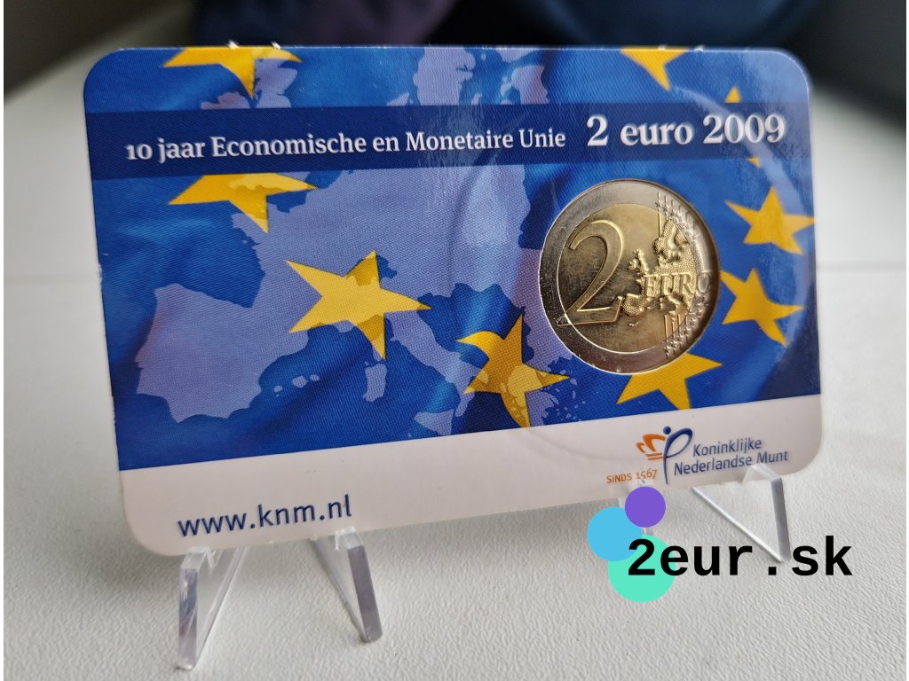 Holandská pamätná 2 eurová minca z roku 2009 bola vydaná pri príležitosti 10. výročia vzniku Hospodárskej a menovej únie (WWU/EMU). Tento historický míľnik pripomína proces európskej integrácie, ktorý viedol k zavedeniu jednotnej meny euro a posilnil hospodársku spoluprácu medzi členskými štátmi. Motív mince symbolicky zdôrazňuje význam spoločného hospodárskeho priestoru a stability, ktorú euro prinieslo.
