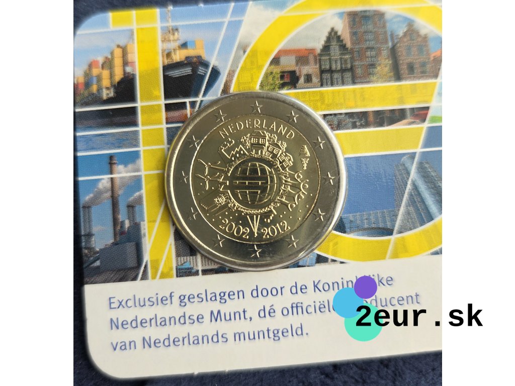 Holandská dvojeurová minca z roku 2012 bola vydaná na oslavu 10. výročia zavedenia eura, ktoré zjednotilo európske ekonomiky a zjednodušilo obchod medzi krajinami. Motív mince zobrazuje symboly spoločnej meny s dynamickým dizajnom, ktorý odráža jej význam pre hospodársku stabilitu a integráciu. Euro sa za desať rokov stalo neoddeliteľnou súčasťou každodenného života miliónov Európanov.