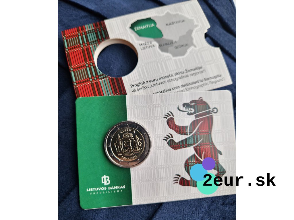 Dvojeurová minca z Litvy z roku 2019 oslavuje región Žemaitija, ktorý je významnou súčasťou histórie a kultúrneho dedičstva krajiny. Motív mince predstavuje symboly Žemaitije, čím pripomína bohatú tradíciu a jedinečný charakter tohto historického územia. Táto pamätná minca je súčasťou série, ktorá približuje významné litovské regióny.