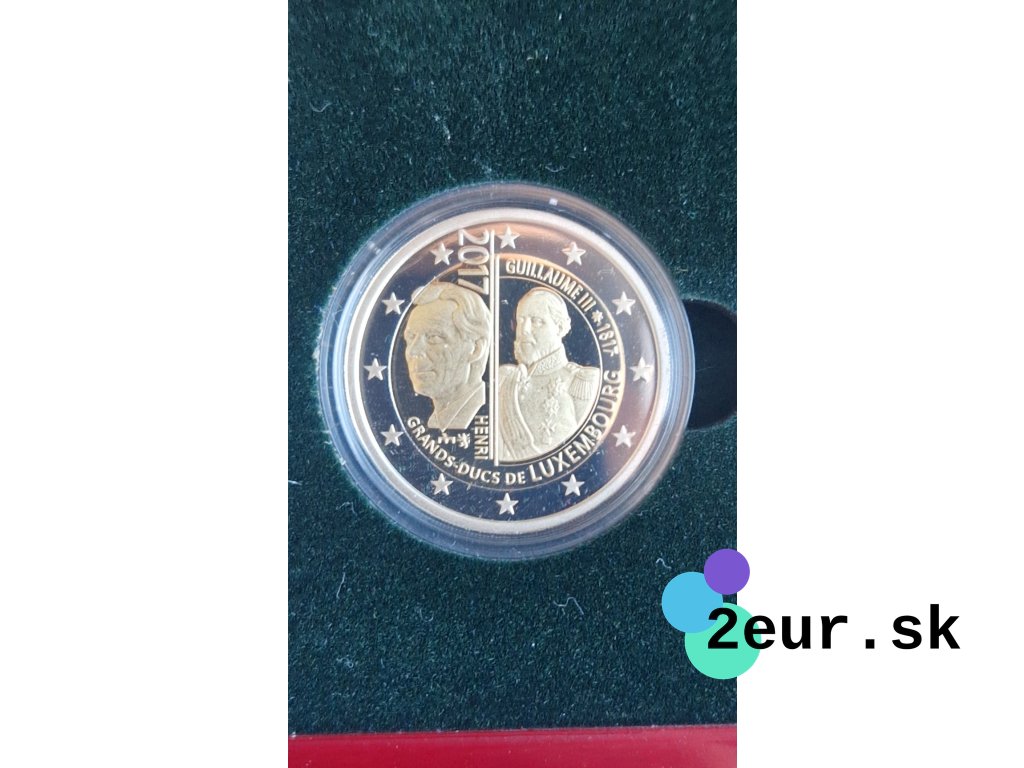 Oficiálny súbor 2 eurových mincí Luxembursko 2016–2018 v kvalite Proof vychádza v limitovanom náklade 2 500 setov. Set obsahuje päť 2 eurových mincí a priebežne zachytáva kľúčové témy moderných dejín: 50. výročie mosta veľkovojvodkyne Charlotty (2016), 50. výročie dobrovoľnej armády (2017), 200. výročie narodenia veľkovojvodu Guillaume III. (2017), 150. výročie luxemburskej ústavy (2018) a 175. výročie úmrtia veľkovojvodu Guillaume I. (2018). Súbor tvorí ucelený prehľad emisií s jednotným zberateľským spracovaním Proof.