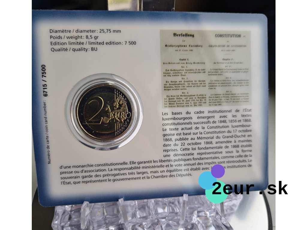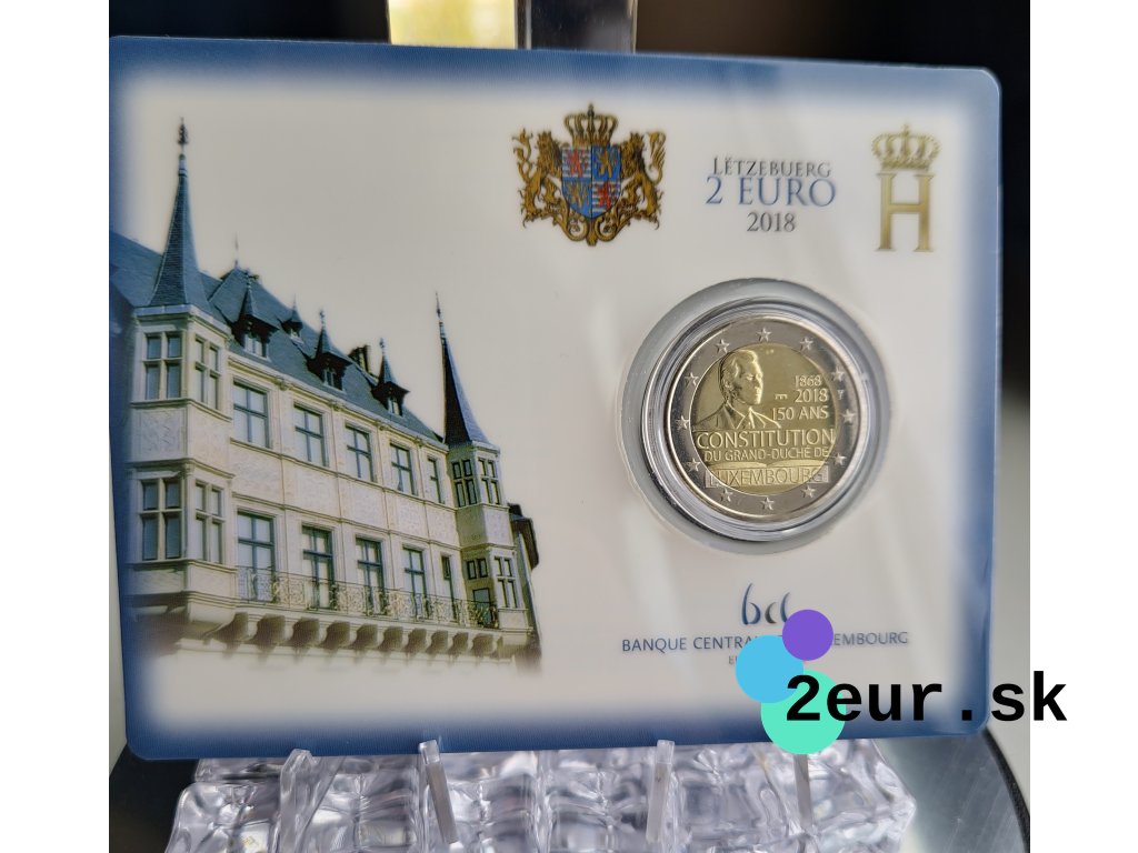 Krajina: Luxembursko • Rok: 2018 • Téma: 150. výročie luxemburskej ústavy • Balenie: oficiálna karta (coincard) • Náklad: 7 500 ks • Mincovná značka v sete: „Servaas Bridge“.