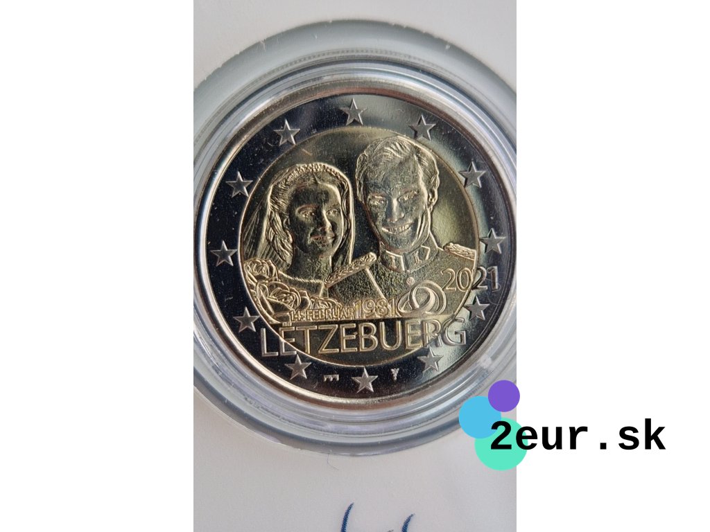 2 eurová minca Luxembursko 2021 „40. výročie sobáša veľkovojvodkyne Maria Teresy a veľkovojvodu Henricha“ vychádza v kvalite BU a dodáva sa v oficiálnej karte. Téma pripomína svadbu v roku 1981 a zdôrazňuje kontinuitu rodu Nassau-Weilburg. Panovnícky pár reprezentuje krajinu a dlhodobo podporuje kultúrne a charitatívne iniciatívy.