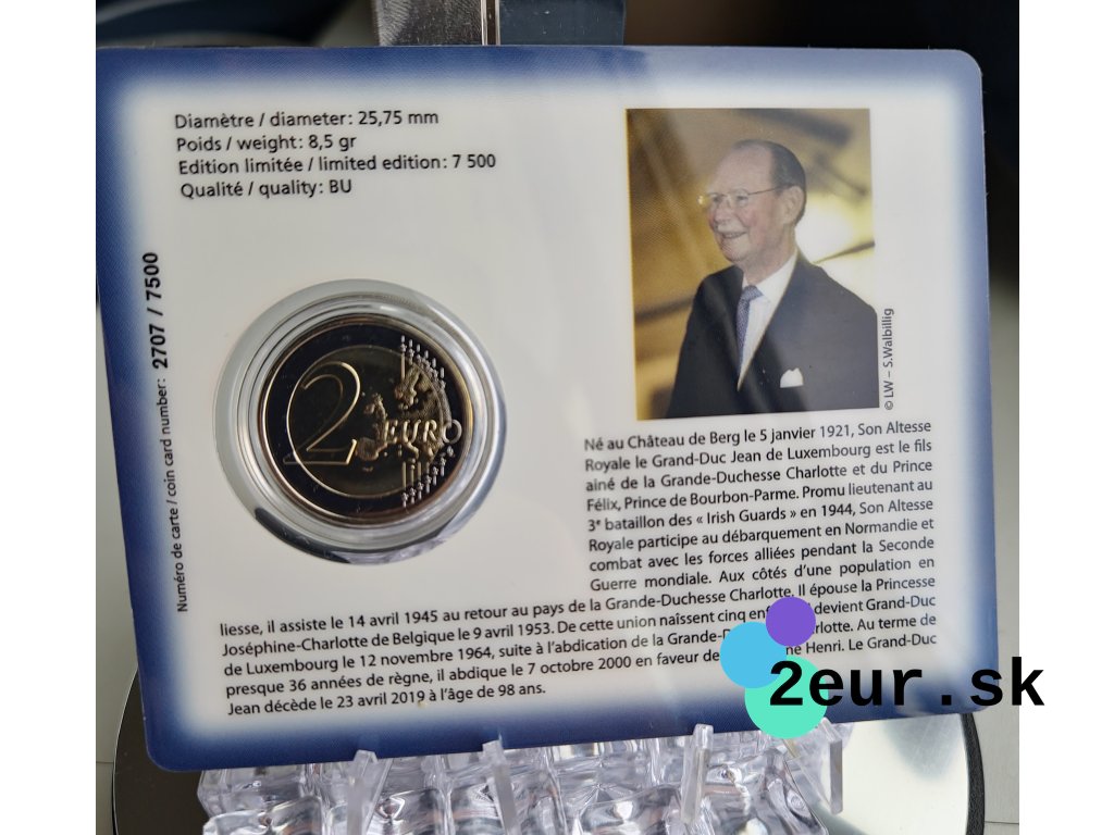 Krajina: Luxembursko • Rok: 2021 • Téma: 100. výročie narodenia veľkovojvodu Jeana • Balenie: oficiálna karta • Náklad: 7 500 ks (coincard) • Mincovné značky: Servaas Bridge / Caduceus.
