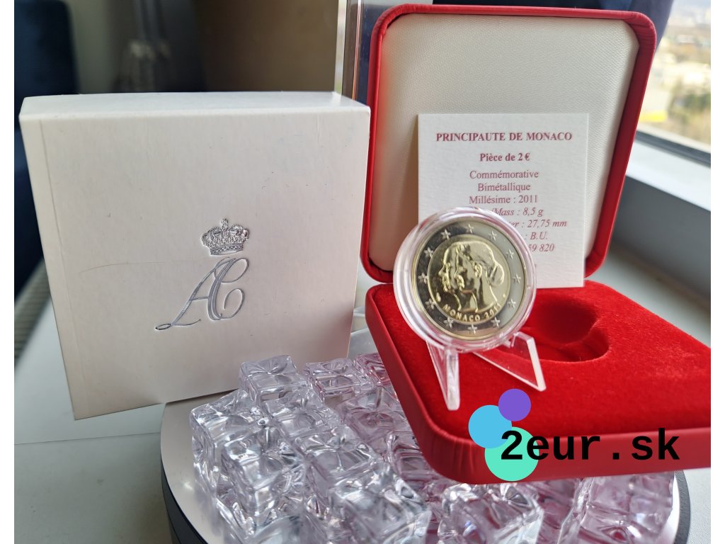 Krajina: Monako • Rok: 2011 • Kvalita: BU • Téma: Svadba kniežaťa Alberta II. a Charlene • Balenie: puzdro s certifikátom • Náklad: 59 820 ks.