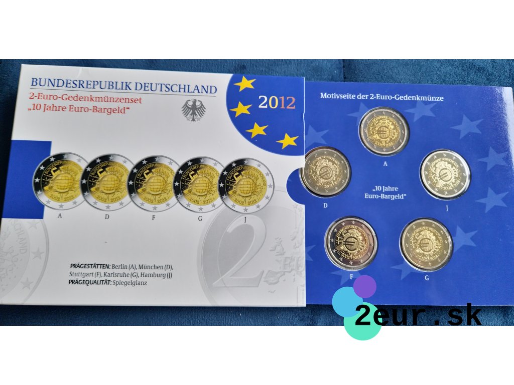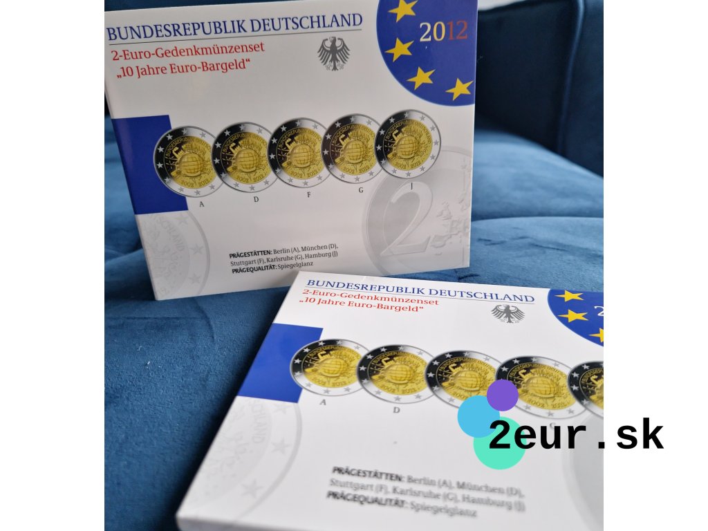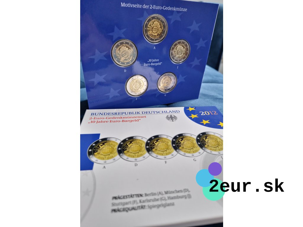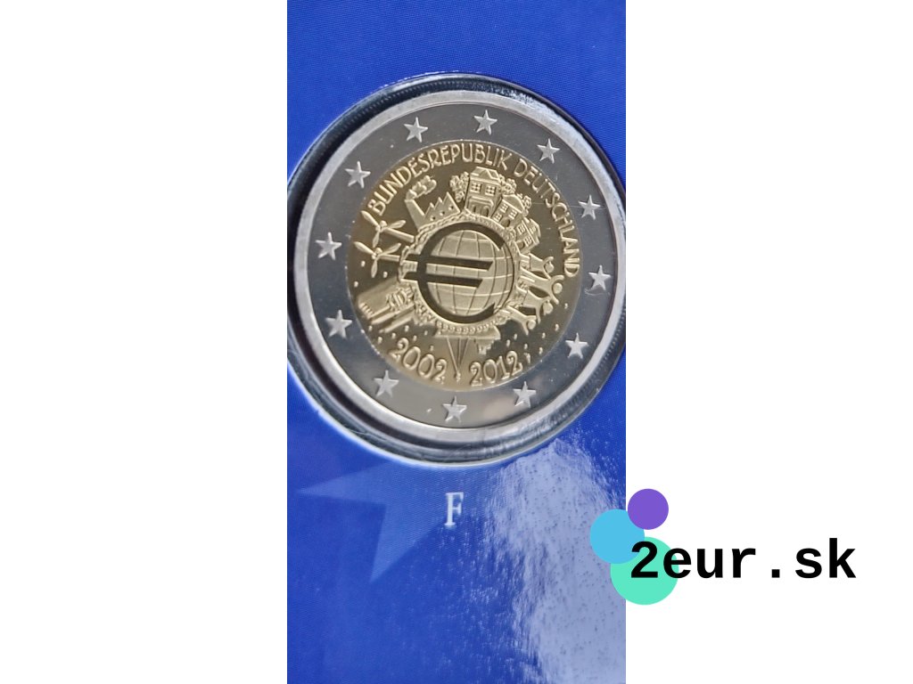 Euro, ako spoločná mena, oslavovalo v roku 2012 svoje prvé desaťročie. Zavedenie eura v roku 2002 zjednotilo mnohé európske krajiny pod jednou menou a prinieslo stabilitu a jednotu na finančnom trhu. Na oslavu tejto významnej udalosti Nemecko vydalo špeciálnu 2 eurovú pamätnú mincu. Táto minca bola vydaná ako súčasť série 5 mincí v proof kvalite, s označeniami mincovní A, D, F, G a J.