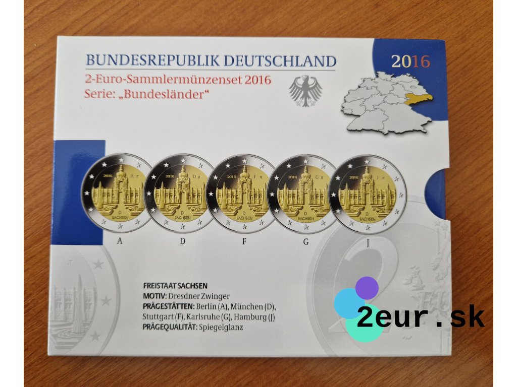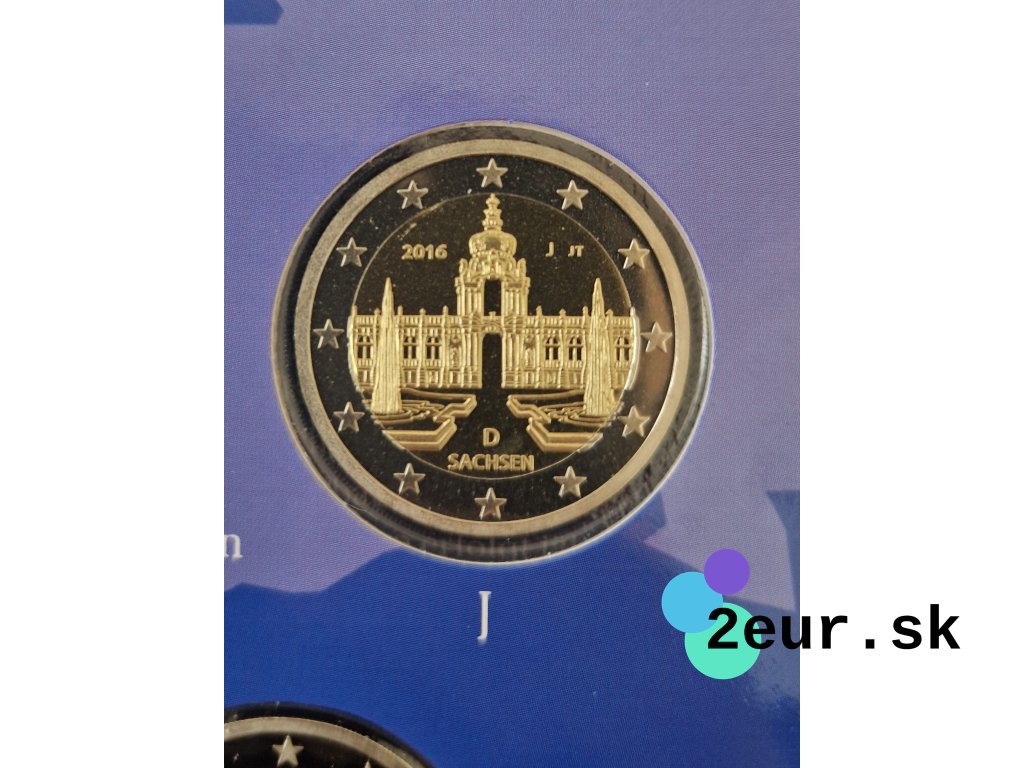 Zwinger v Drážďanoch je jednou z najvýznamnejších barokových stavieb v Európe a symbolom nemeckého kultúrneho dedičstva. Postavený v 18. storočí, slúžil ako miesto kráľovských slávností a dnes je domovom pre významné umelecké a vedecké zbierky. V roku 2016 Nemecko vydalo 2-eurovú pamätnú mincu venovanú Sársku. Táto minca je súčasťou proof sady s piatimi mincami, ktoré obsahujú znaky všetkých piatich nemeckých mincovní (A, D, F, G, J).