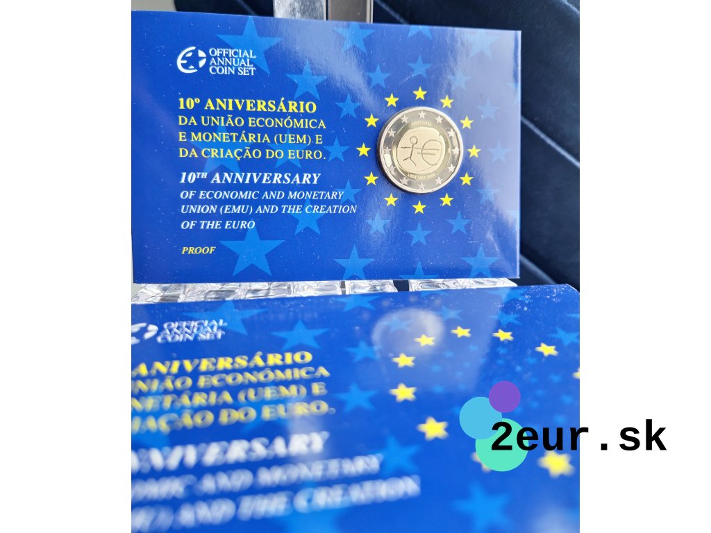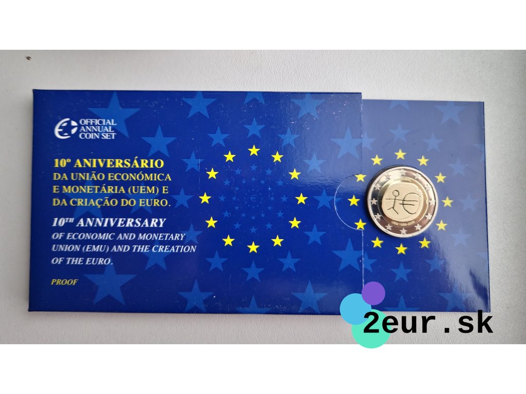 2 eurová minca Portugalsko 2009 „10 rokov eura – HMÚ (UEM)“ vychádza vo verzii Proof a dodáva sa v oficiálnom blistri. Emisia pripomína začiatok Hospodárskej a menovej únie v roku 1999 a nástup eura ako jednotnej meny. Ide o spoločnú emisiu krajín eurozóny z roku 2009.