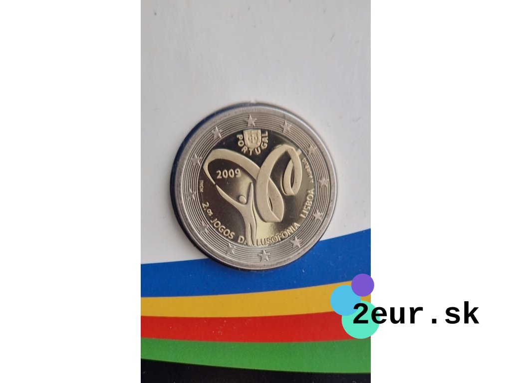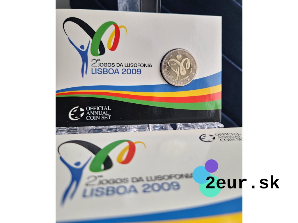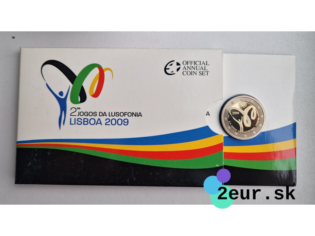 2 eurová minca Portugalsko 2009 „2. lusofónske hry v Lisabone“ vychádza vo verzii Proof a dodáva sa v oficiálnom blistri. Lusofónske hry (Jogos da Lusofonia) spájajú športovcov z portugalsky hovoriacich krajín a regiónov a oslavujú spoločný jazyk aj kultúrne väzby. Druhý ročník hostí v roku 2009 Lisabon.