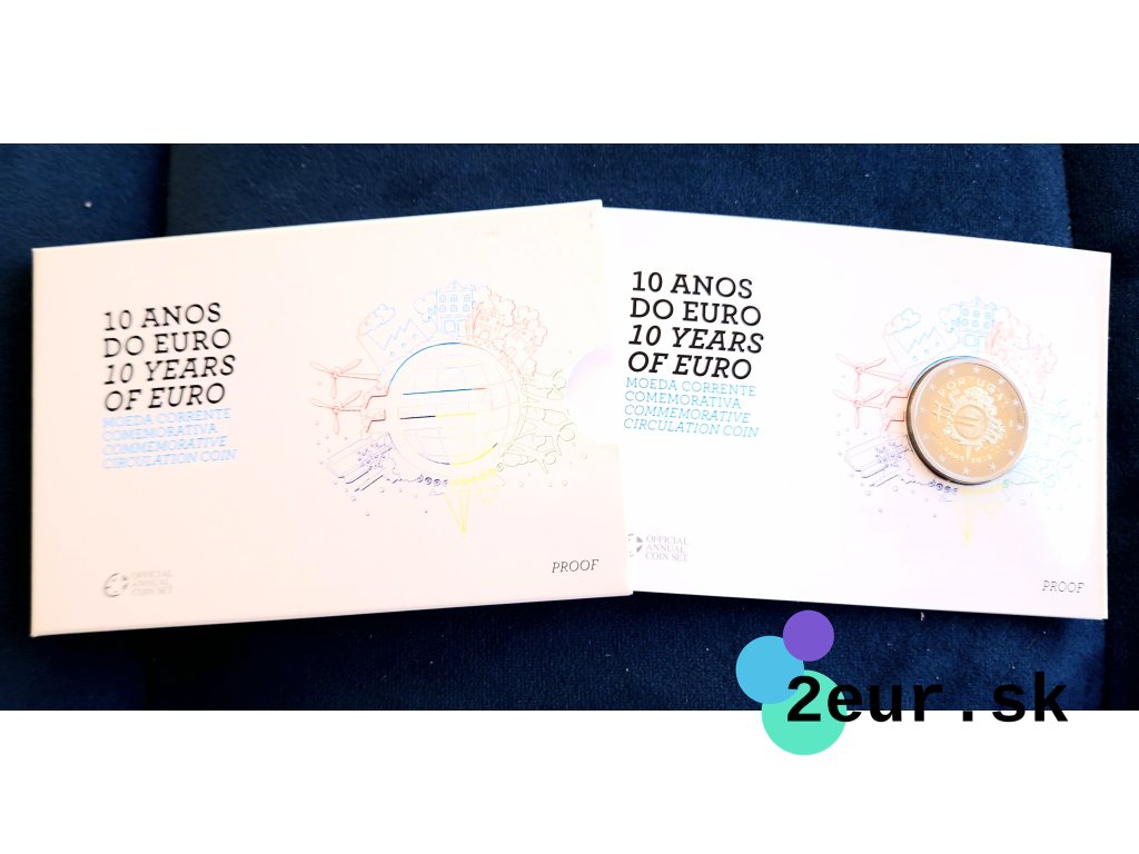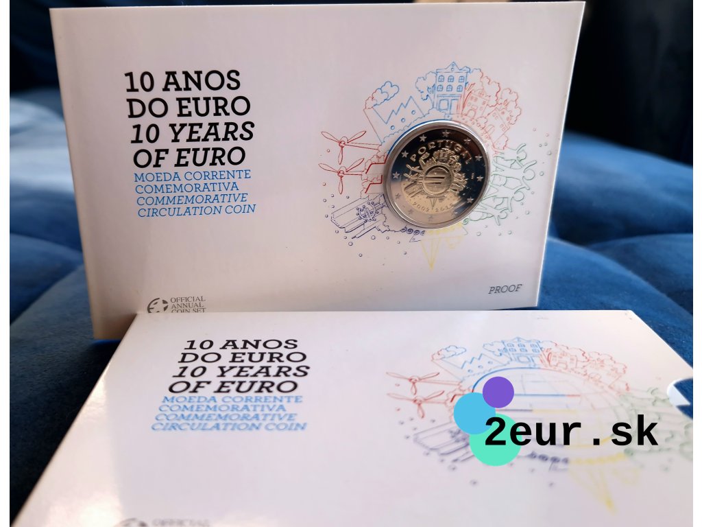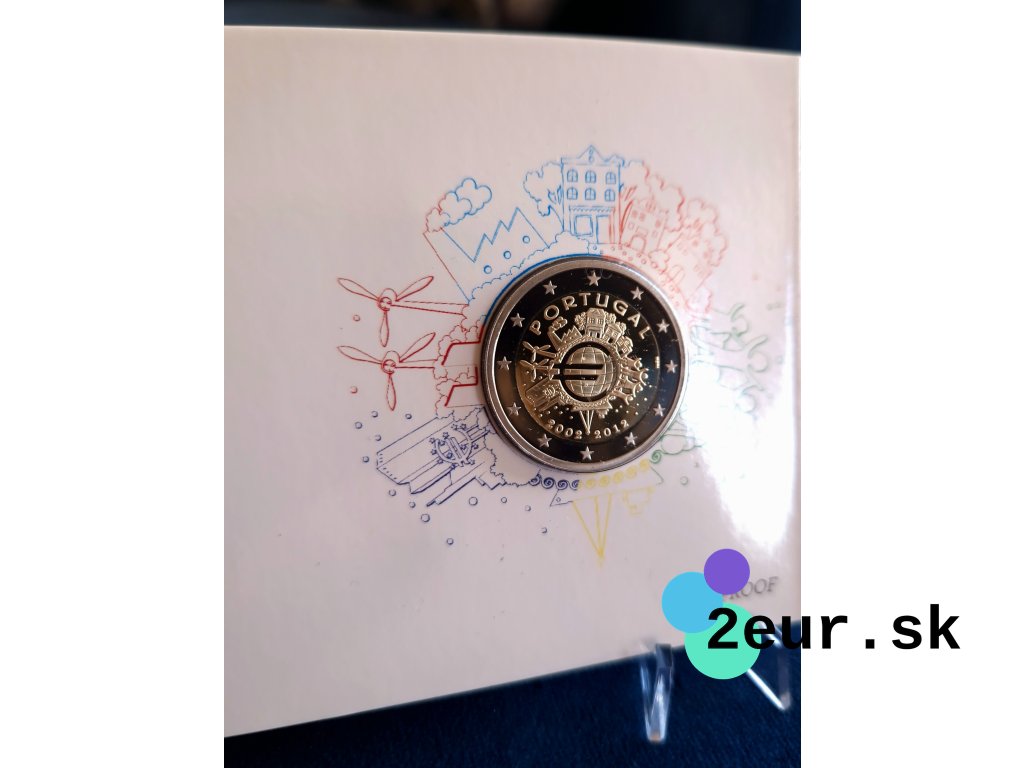 V roku 2012 Portugalsko vydalo 2-eurovú mincu na počesť 10. výročia zavedenia eura ako spoločnej meny. Dizajn mince symbolicky zobrazuje jednotu a spoluprácu krajín eurozóny prostredníctvom zjednotených ľudských postáv obklopujúcich symbol eura. Táto minca pripomína dekádu ekonomických zmien a posilnenie európskej identity. Dostupná je aj v kvalite proof, balená v elegantnej krabičke.