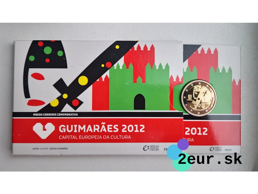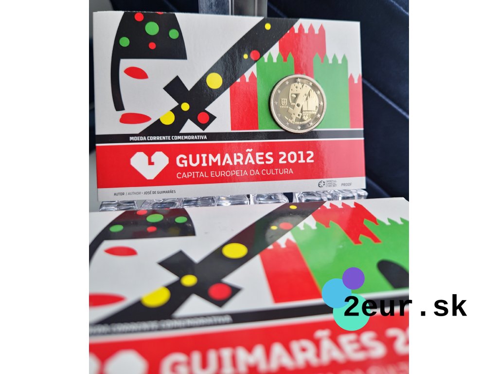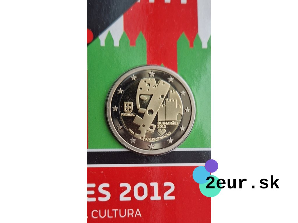 2 eurová minca Portugalsko 2012 „Guimarães – Európske hlavné mesto kultúry“ vychádza vo verzii Proof a dodáva sa v oficiálnom blistri. Guimarães nesie titul EHMK 2012 a pripomína význam mesta pre portugalské dejiny aj súčasnú kultúrnu scénu. Historické centrum je zapísané v UNESCO a reprezentuje začiatky portugalskej štátnosti.