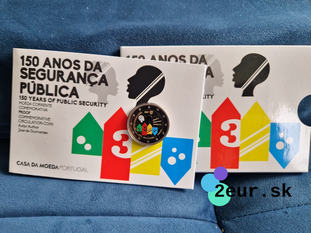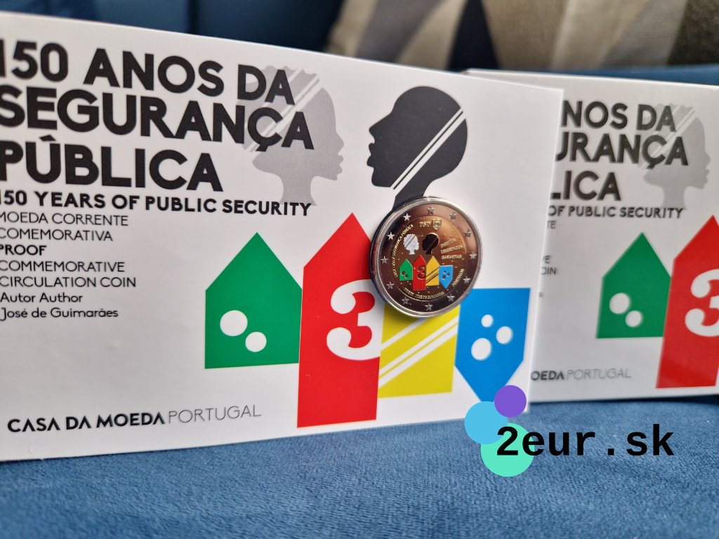 Portugalsko vydalo v roku 2017 pamätnú 2 eurovú mincu pri príležitosti 150. výročia založenia verejnej bezpečnosti – Polícia de Segurança Pública (PSP). Táto minca vyšla aj vo výnimočnej proof verzii s originálnym farebným prevedením, ktoré zvýrazňuje detaily policajného znaku a tematické prvky. Polícia PSP zohráva kľúčovú úlohu v ochrane verejného poriadku a bezpečnosti občanov Portugalska už od roku 1867. Minca je zabalená v oficiálnej krabičke s číslovaným certifikátom, čo z nej robí zberateľsky atraktívne vydanie.