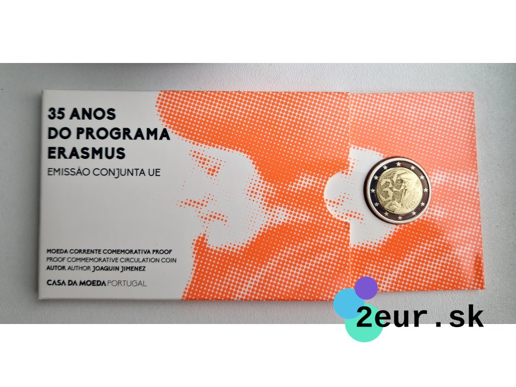 Krajina: Portugalsko • Rok: 2022 • Kvalita: Proof • Téma: 35 rokov programu Erasmus • Balenie: oficiálne balenie • Náklad: 6 000 ks.