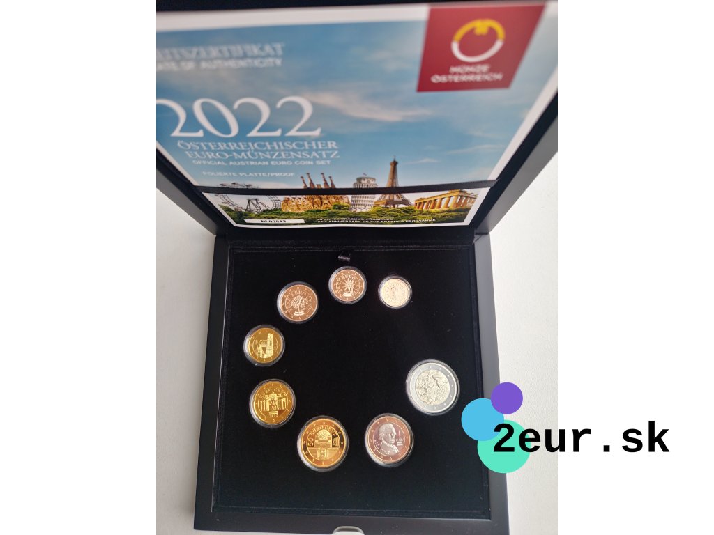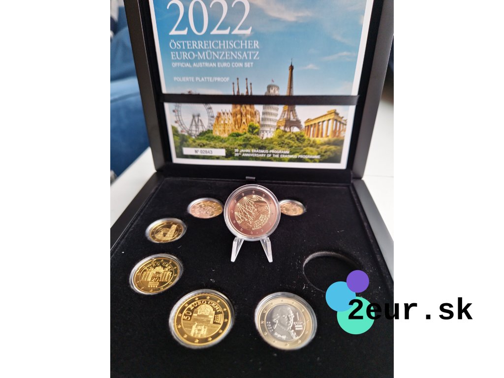 Krajina: Rakúsko • Rok: 2022 • Kvalita: Proof • Obsah: 1 c – 1 € (Proof) + 2 € „35 rokov programu Erasmus“ (Proof – len v tomto sete) • Náklad: 10 000 ks • Balenie: oficiálny coinset.