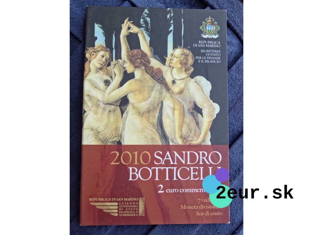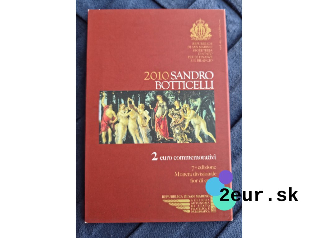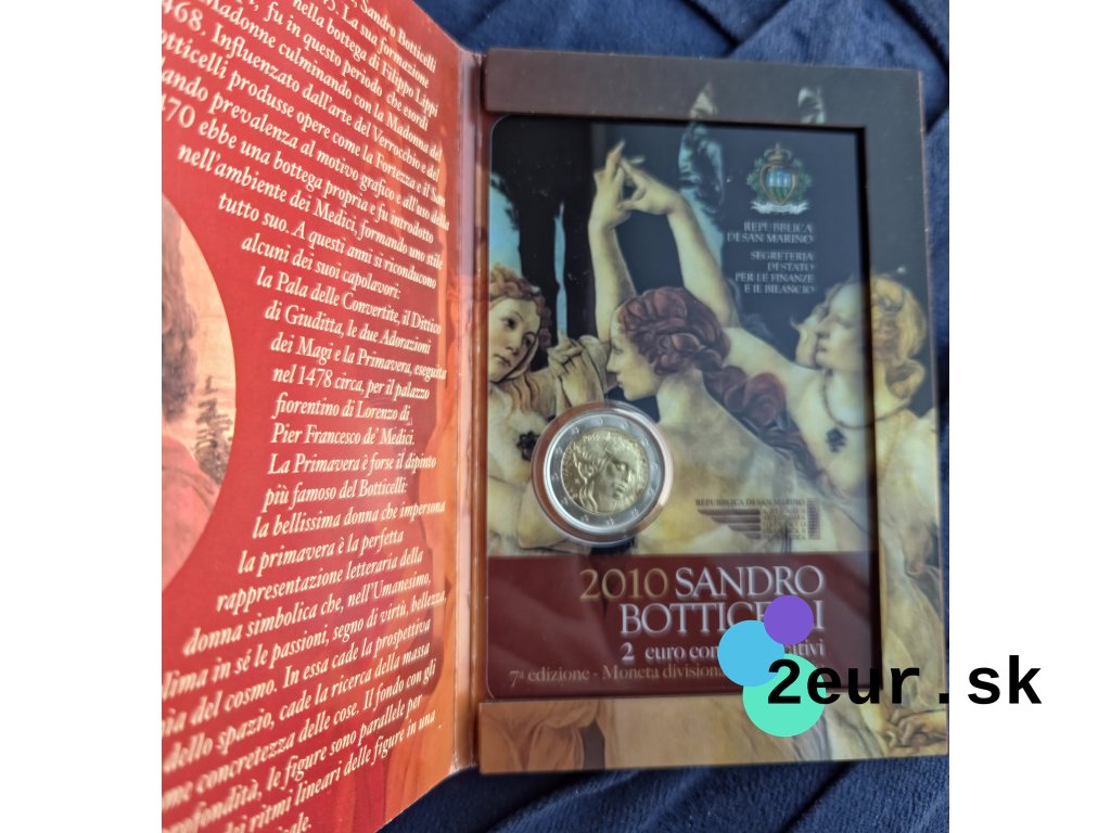Dvojeurová pamätná minca San Marína z roku 2010 je venovaná 500. výročiu úmrtia Sandra Botticelliho, významného umelca talianskej renesancie. Autor ikonických diel ako Zrodenie Venuše alebo Primavera je dodnes symbolom krásy, harmónie a poetickosti vo výtvarnom umení. Minca pripomína jeho prínos k umeleckému odkazu Európy. Vydaná bola v kvalite BU v pamätnej karte.