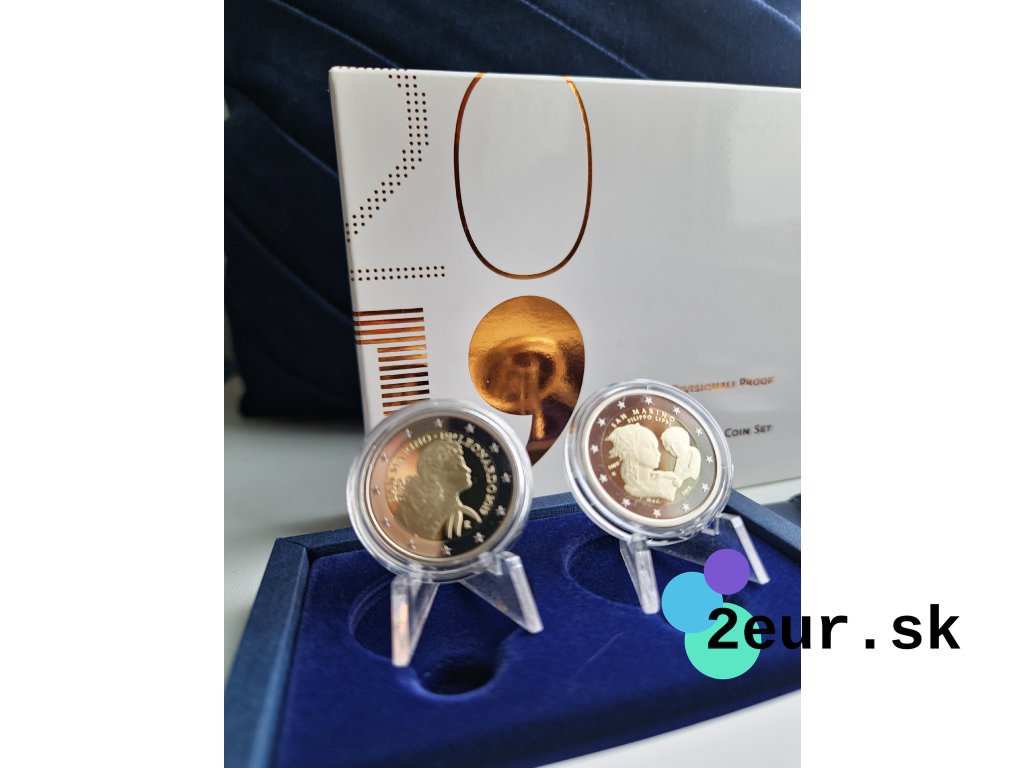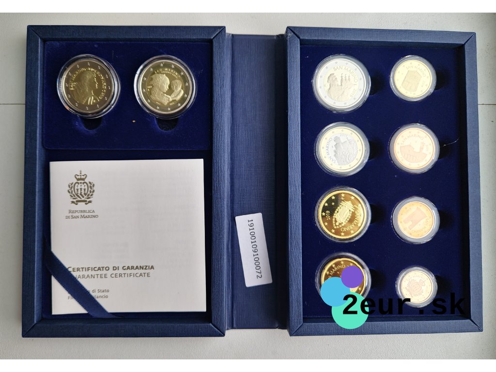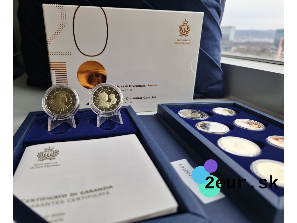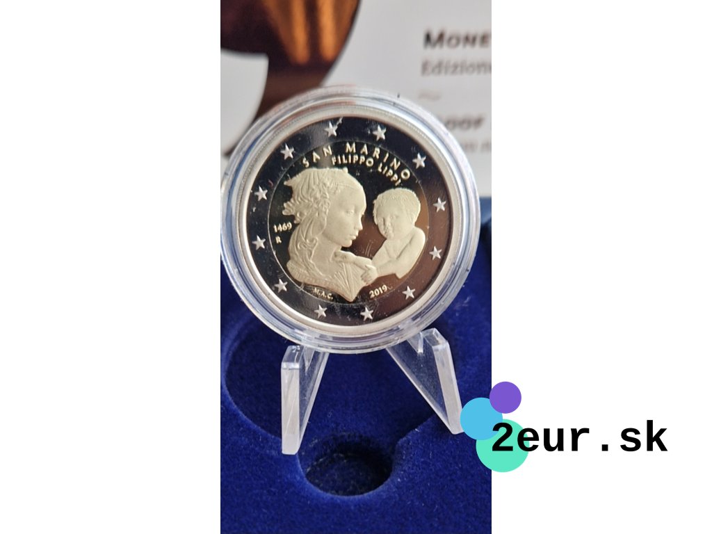 Oficiálny euro coinset San Maríno 2019 v kvalite Proof vychádza v limitovanom náklade 2 500 kusov a obsahuje kompletnú nominálnu sériu 1 cent – 2 euro. Súčasťou setu sú aj obe 2 € emisie roku 2019 v prevedení Proof: „500. výročie úmrtia Leonarda da Vinci“ a „550. výročie úmrtia Filippa Lippiho“. Leonardo da Vinci formuje renesančné umenie aj vedu a ovplyvňuje európsku kultúru naprieč stáročiami; Filippo Lippi patrí medzi najvýraznejších florentských maliarov 15. storočia a posúva výtvarný prejav smerom k realizmu a emócii.