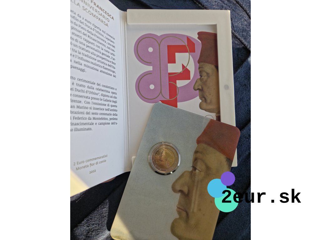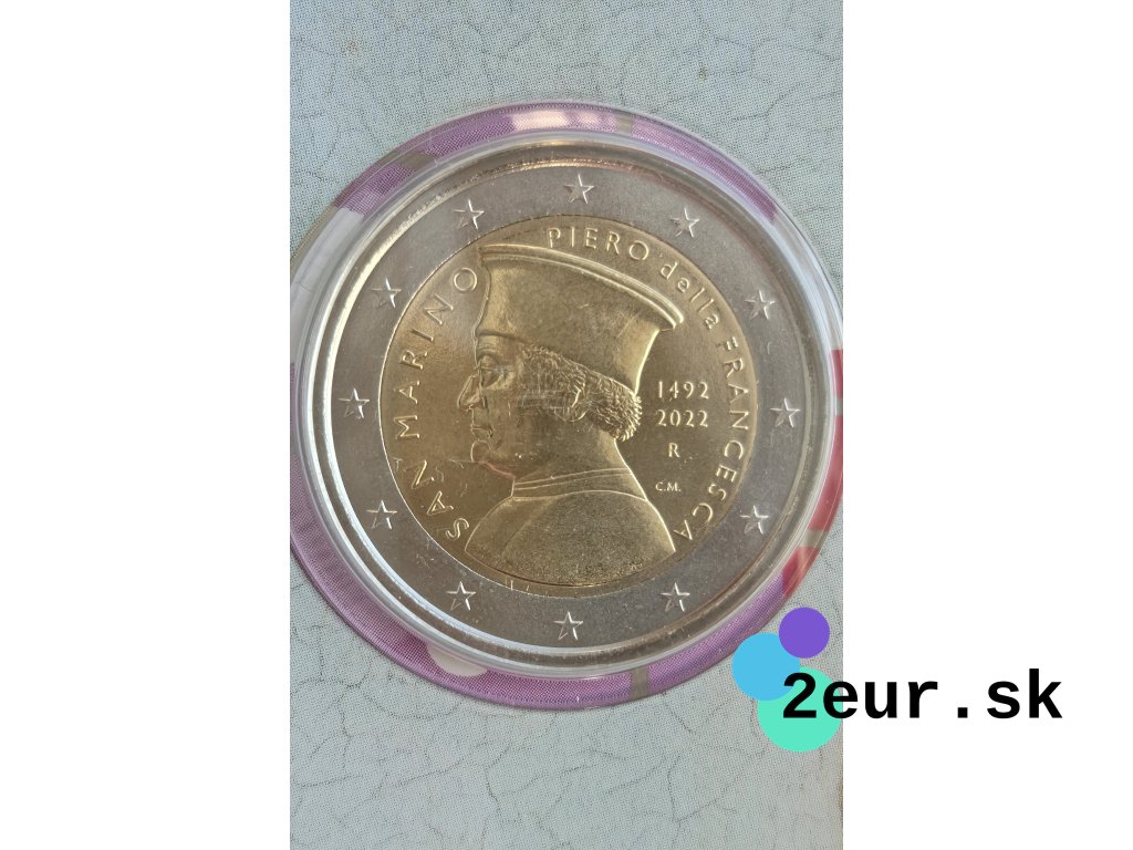San Maríno v roku 2022 vydalo pamätnú 2-eurovú mincu na počesť 530. výročia úmrtia Piera della Francescu, významného talianskeho renesančného maliara a teoretika umenia. Jeho diela vynikali majstrovskou perspektívou a geometrickou presnosťou, čím ovplyvnili vývoj európskeho umenia. Minca pripomína jeho prínos do dejín maliarstva a uchováva odkaz renesančnej estetiky.