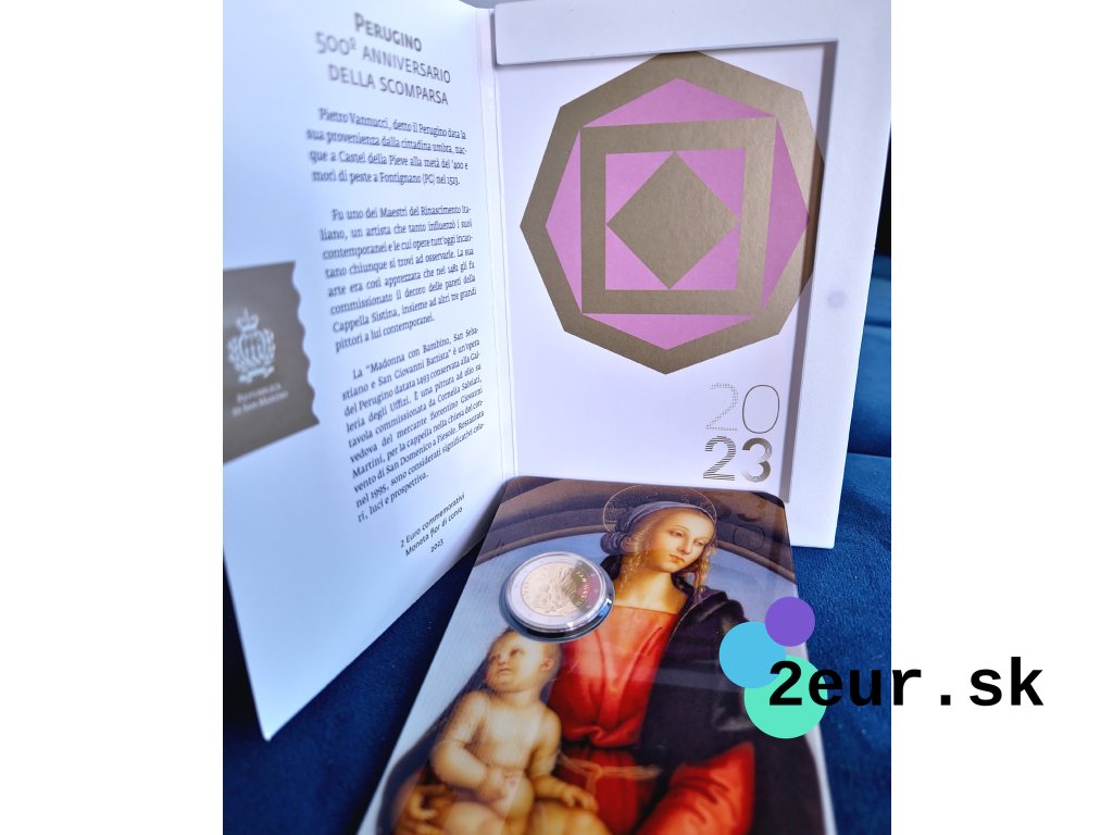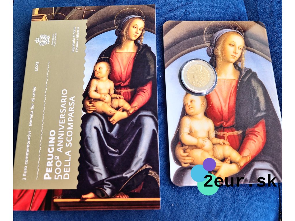 Sanmarínska dvojeurová minca z roku 2023 je venovaná 500. výročiu úmrtia renesančného maliara Perugina, jedného z najvýznamnejších talianskych umelcov tej doby. Pietro Vannucci, známy ako Perugino, bol majstrom perspektívy a kompozície, ktorého dielo inšpirovalo generácie maliarov vrátane Rafaela. Dizajn mince zobrazuje detail z jeho ikonického umenia, čím vzdáva hold jeho prínosu k európskej kultúrnej histórii.