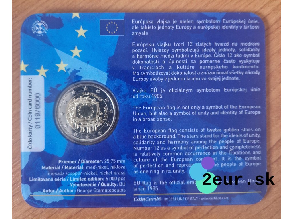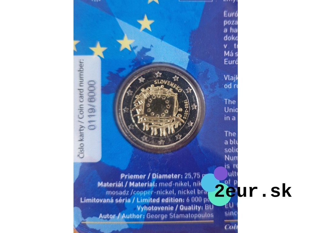 V roku 2015 si Slovensko pripomenulo 30. výročie európskej vlajky, ktorá sa stala symbolom jednoty, solidarity a harmónie medzi národmi Európskej únie. Modré pole s dvanástimi zlatými hviezdami symbolizuje ideály jednoty a mieru, ktoré sú základom európskeho projektu. Na počesť tohto výročia bola vydaná 2-eurová minca v kvalite BU, ktorá je dostupná v pamätnej karte a pripomína význam európskej vlajky v histórii európskej integrácie.