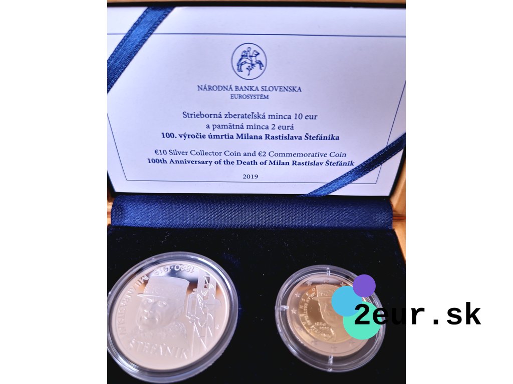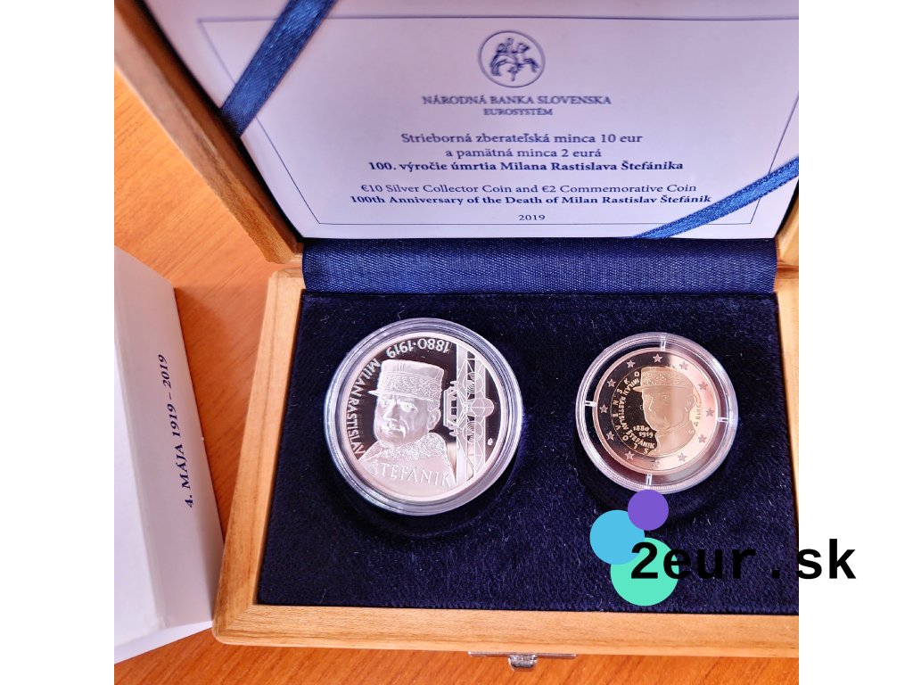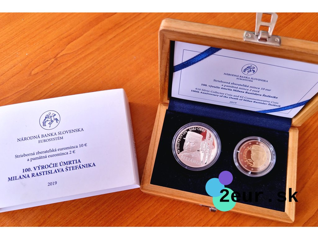 V drevenom sete balené dve mince venované téme Mialana Rastislava Štefánika. 2 eurová pamätná minca spolu so striebornou 10 eurovkou tvoria veľmi pekný celok, ktorý vyšiel v naozaj nízkom náklade.