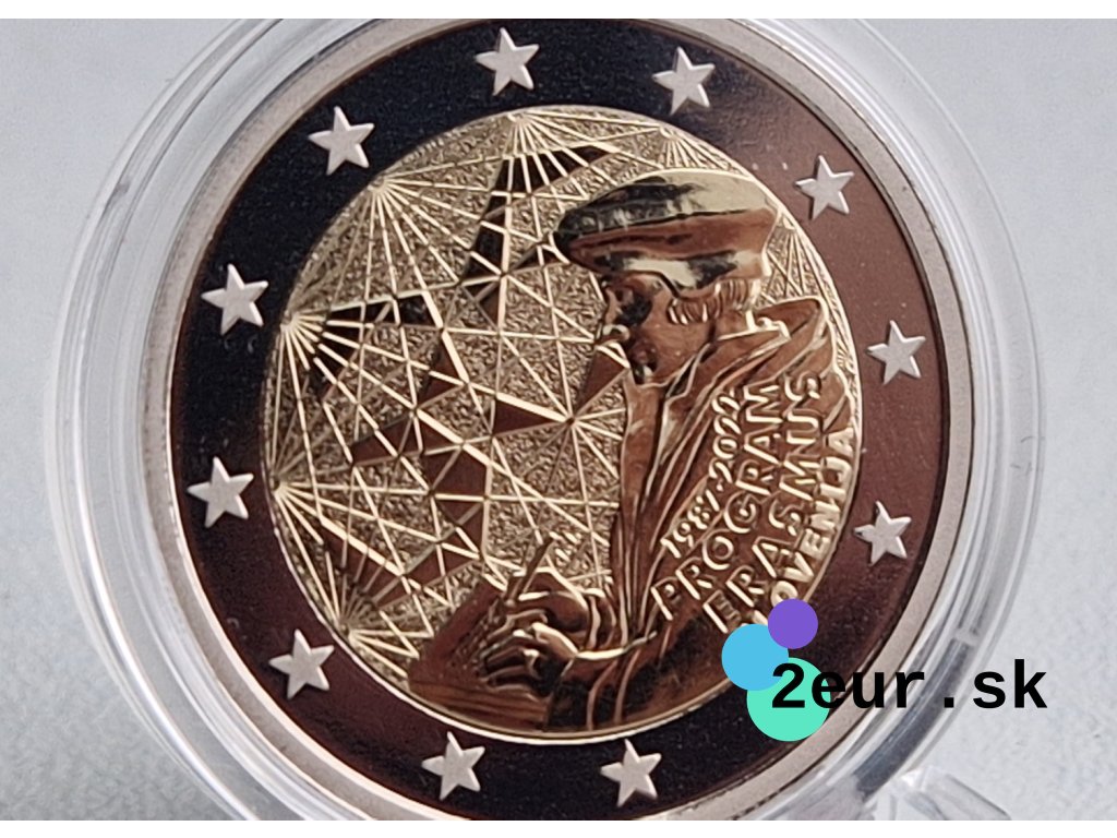2 eurová minca Slovinsko 2022 „35 rokov programu Erasmus“ vychádza vo verzii Proof a dodáva sa v kapsule. Program Erasmus vzniká v roku 1987 a podporuje študijnú aj pracovnú mobilitu naprieč Európou, čím prepája univerzity, školy a mladých ľudí. Ide o spoločnú emisiu krajín eurozóny z roku 2022, ktorá zdôrazňuje európsku spoluprácu a otvorené príležitosti pre vzdelávanie.