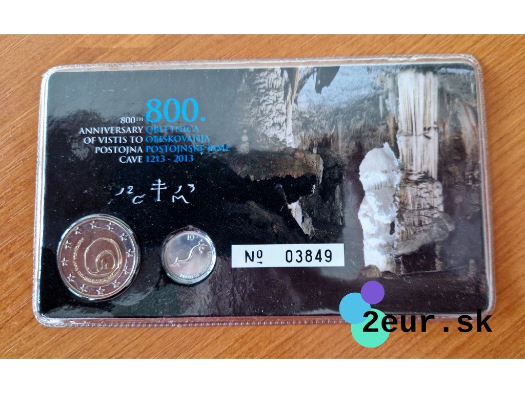 2 euro Slovinsko 2013 - 800. výročie prvej návštevy v Postojnskej jaskyni (Coincard)