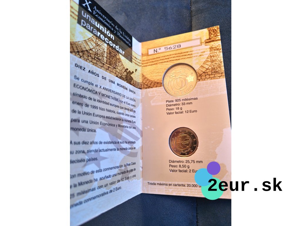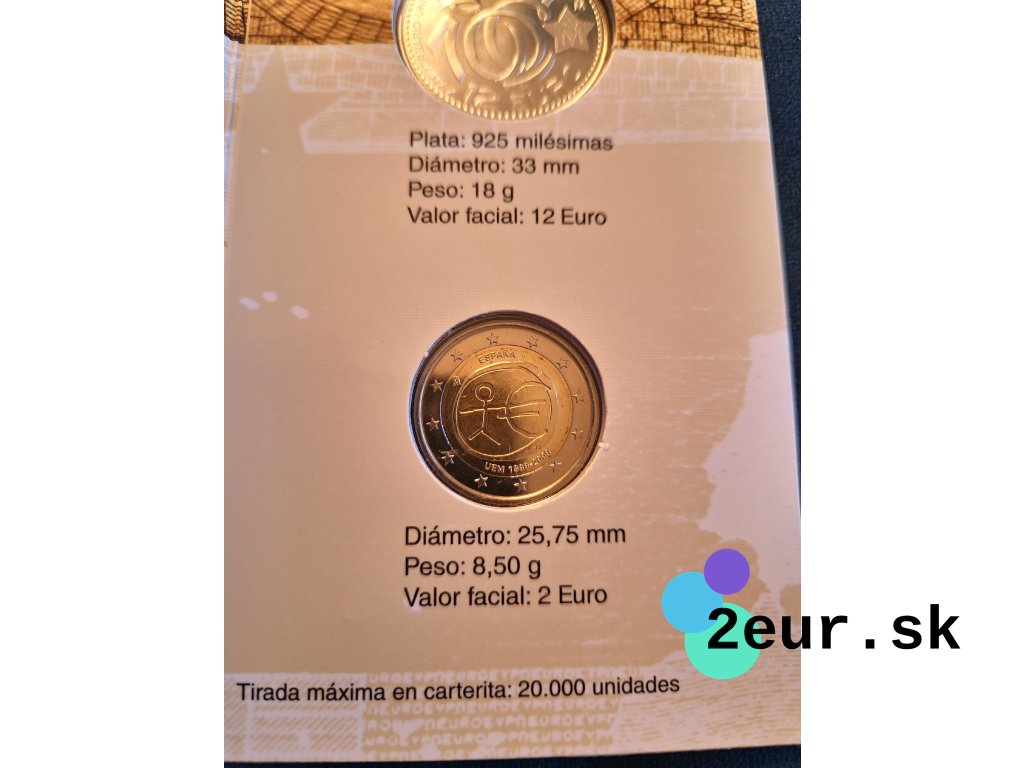 2 euro Španielsko 2009 - 10. výročie hospodárskej a menovej únie (BU so striebornou 12€)