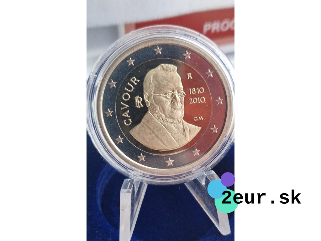 Upozornenie na úvod: 2 eurová minca „200. výročie narodenia Camilla Bensa, grófa z Cavouru“ je vo verzii Proof dostupná výhradne v tomto sete. Oficiálna sada Taliansko 2010 v kvalite Proof obsahuje kompletnú nominálnu radu 1 cent – 2 euro (Proof), kľúčovú 2 € mincu Cavour 2010 (len v tomto sete) a striebornú 5 € mincu „100. výročie Alfa Romeo“ (len v tomto sete). Cavour patrí k hlavným postavám Risorgimenta a stojí pri zrode zjednoteného Talianska; emisia pripomína jeho štátnicky významný odkaz. Alfa Romeo reprezentuje storočie talianskeho dizajnu, techniky a motoristickej tradície.