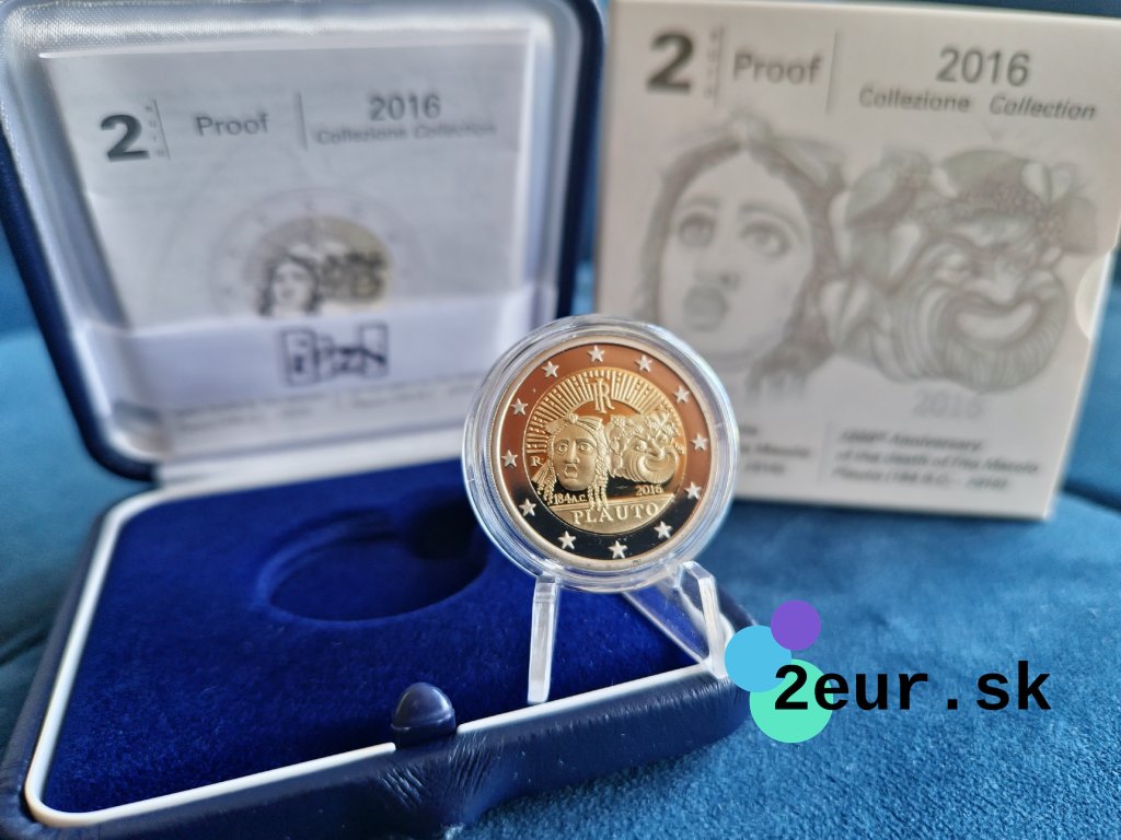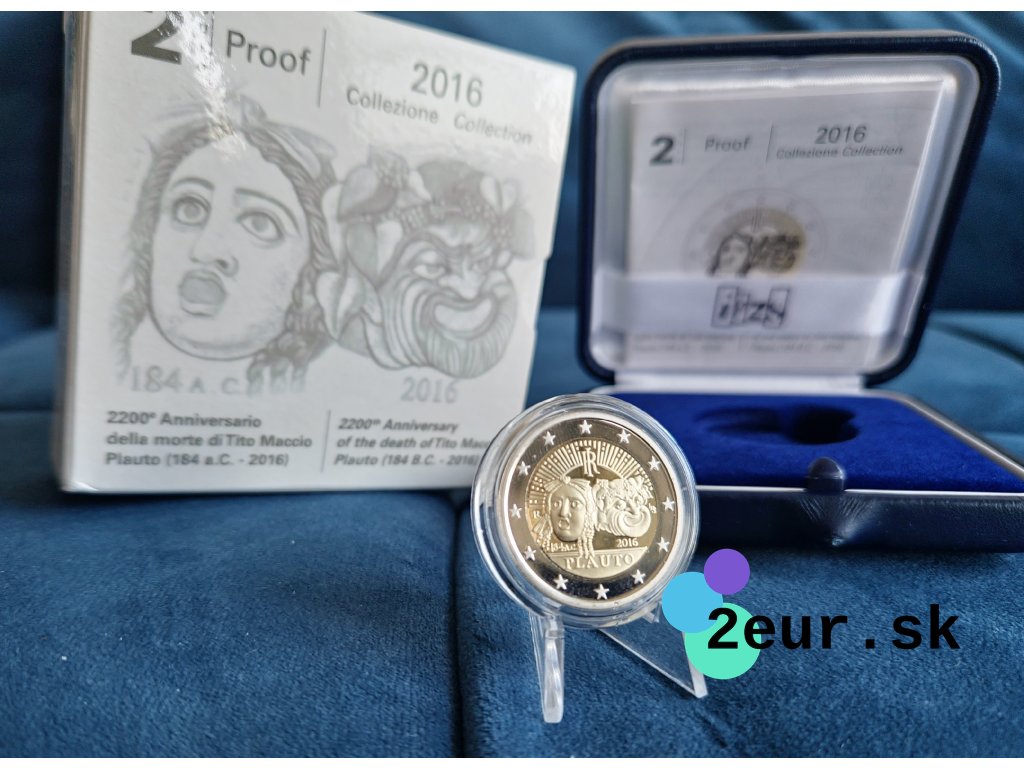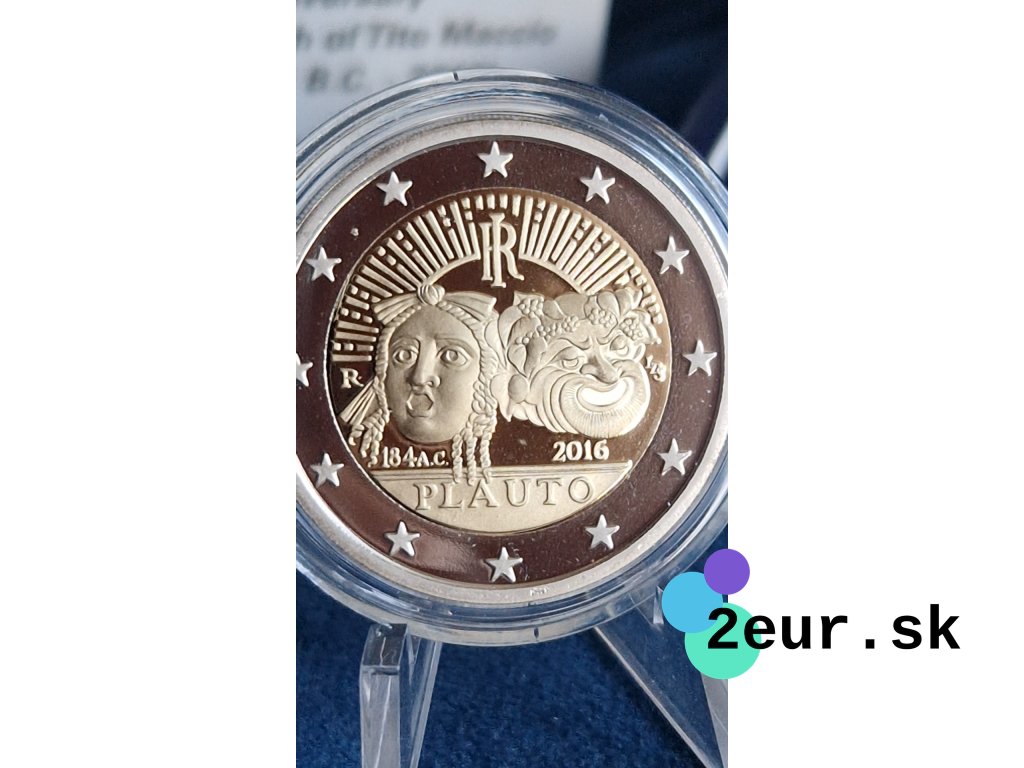 2 eurová minca Taliansko 2016 vydaná vo verzii proof je venovaná 2200. výročiu úmrtia rímskeho dramatika Tita Maccia Plauta, jedného z najvýznamnejších autorov antickej komédie. Plautus výrazne ovplyvnil vývoj európskeho divadla a jeho diela boli predlohou aj pre mnohých renesančných a novovekých dramatikov. Minca v najvyššej kvalite proof vyniká zrkadlovo lesklým povrchom a jemnými detailmi, ktoré dôstojne zobrazujú tému. Je dodávaná v oficiálnom balení a je ideálnym doplnkom numizmatickej zbierky zameranej na kultúrne dedičstvo a rímsku históriu.