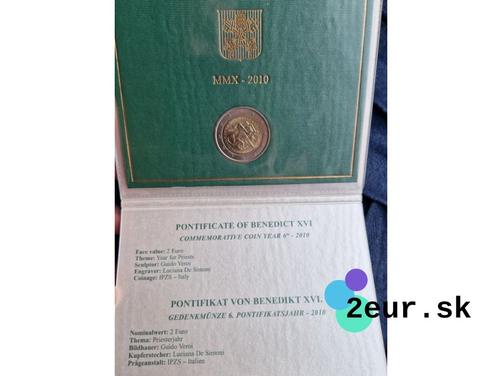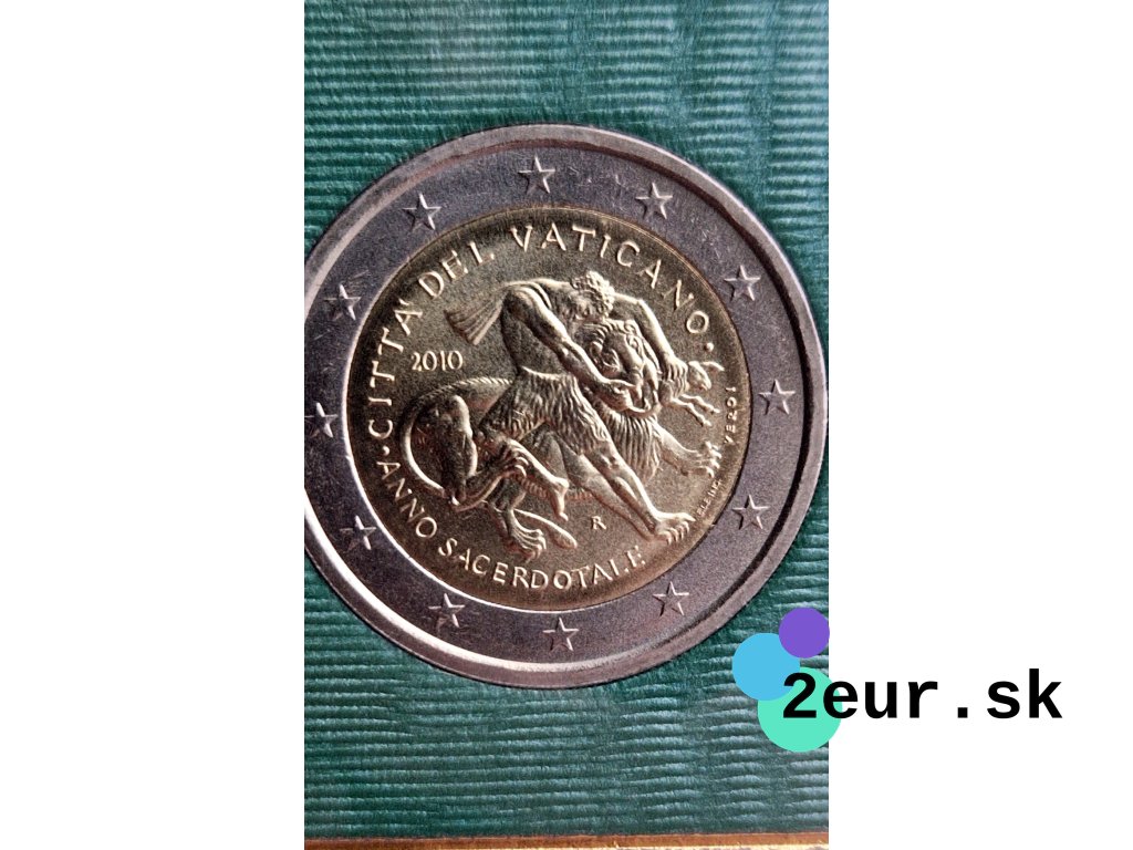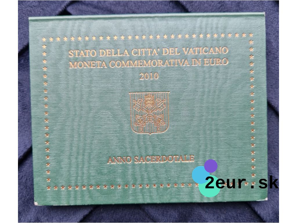 Vatikánska 2-eurová minca z roku 2010 oslavuje Rok kňazov, ktorý vyhlásil pápež Benedikt XVI. na pripomenutie duchovného a pastoračného významu kňazstva. Dizajn mince vyjadruje úctu a poctu kňazom za ich službu v cirkvi a ich kľúčovú rolu v duchovnom vedení veriacich. Táto minca je dostupná v kvalite BU, uložená v pamätnej karte, ktorá dodáva jej prezentácii formálny a dôstojný charakter.