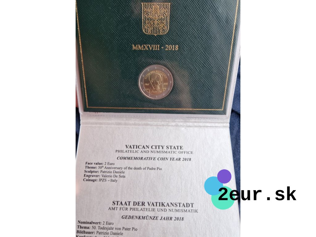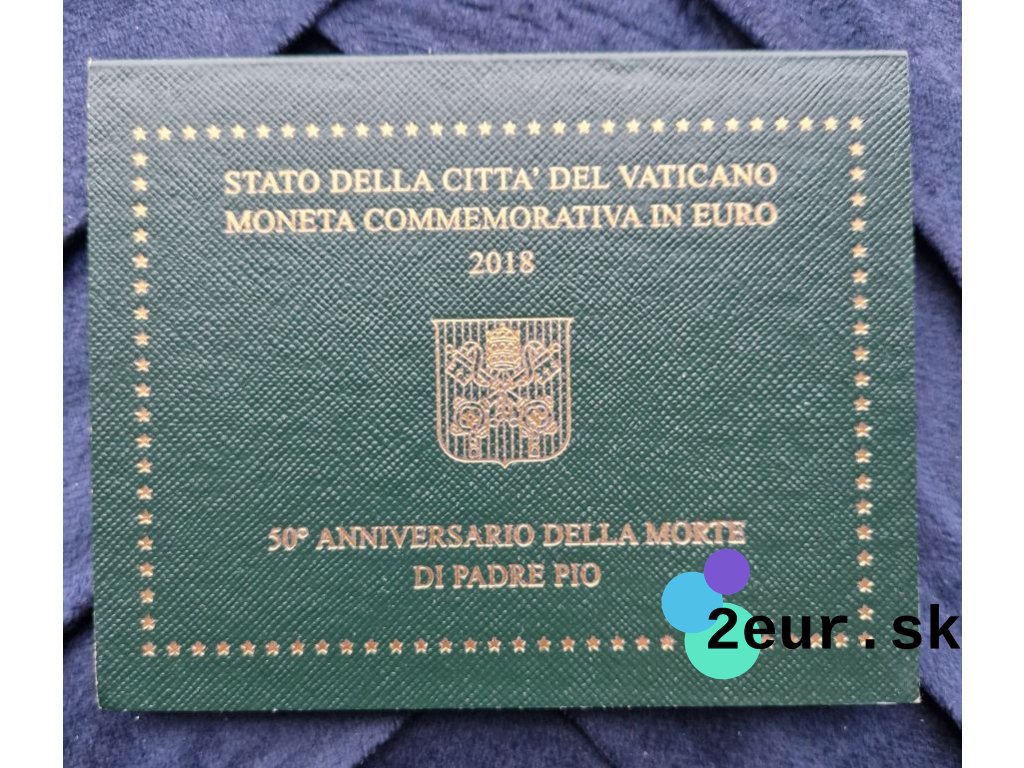 V roku 2018 vydal Vatikán 2-eurovú mincu na počesť 50. výročia úmrtia otca Pia. Minca, ktorá je obohatená o bohaté symboly, reflektuje dedičstvo tohto významného svätca a jeho vplyv na mnohých veriacich po celom svete. Dodáva sa v kvalitnej BU a je umiestnená v pamätnej karte, čo z nej robí zaujímavý predmet pre tých, ktorí sa zaujímajú o históriu a kultúru katolíckej cirkvi.