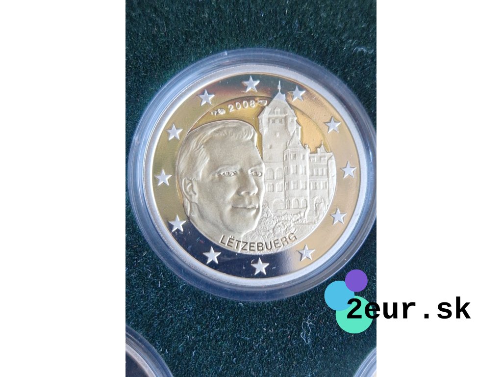 Oficiálna sada euromincí Luxembursko 2008 v kvalite Proof vychádza v limitovanom náklade 2 500 kusov. Obsahuje kompletnú nominálnu radu 1 cent – 2 euro (Proof) a 2 eurovú mincu 2008 „Château de Berg“ (Proof). Sada reprezentuje rané roky hotovostného eura v krajine a prepája národnú symboliku s precíznym zberateľským spracovaním. Motív Château de Berg pripomína oficiálne veľkovojvodské sídlo a kontinuitu konštitučnej monarchie.
